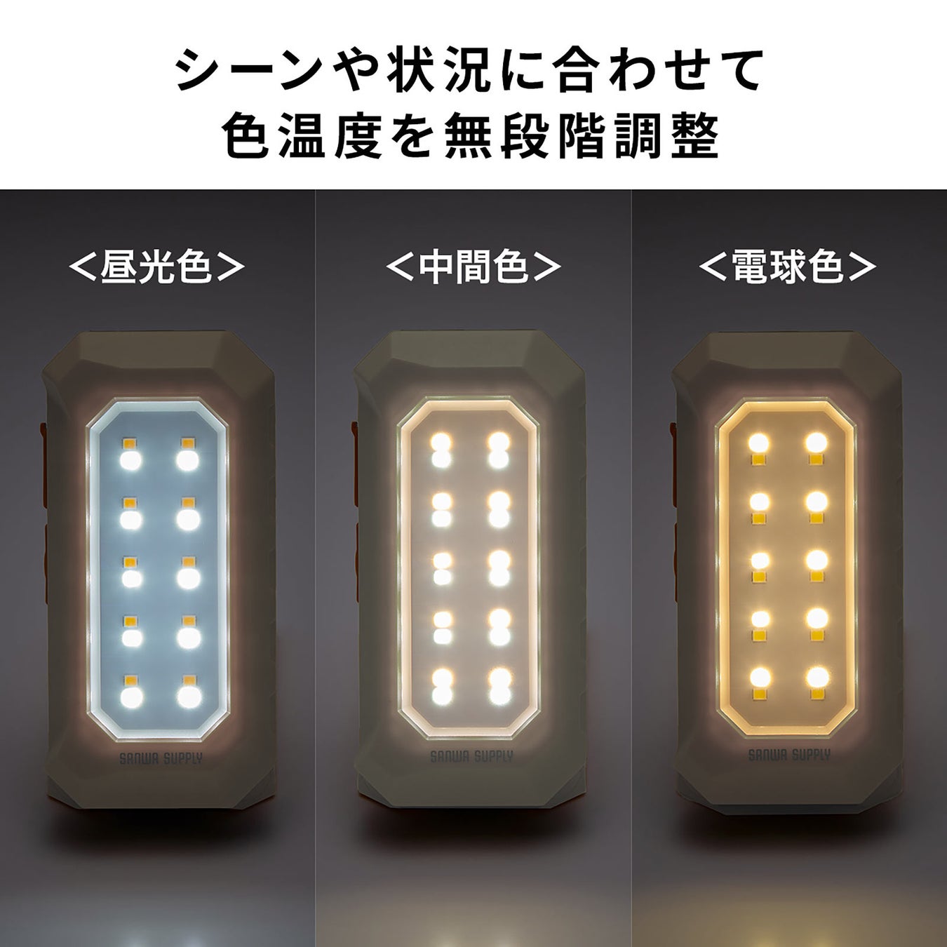 本製品は、20粒のLEDが暗所でも広範囲をしっかり照らし、夜間作業やキャンプ、車内整備にも最適な最大500ルーメンです。3段階の調光と昼光色・電球色の調色機能付きで、用途に合わせて柔軟に使えます。