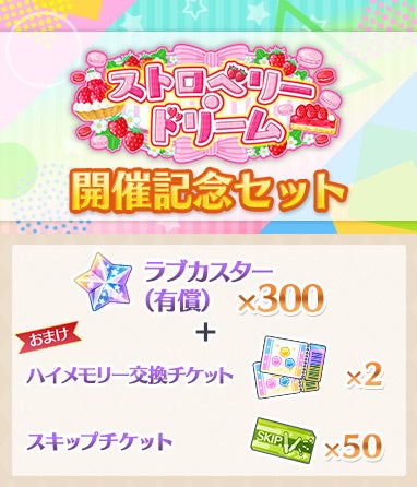 また、イベント開催を記念して、育成や攻略に役立つアイテムが入った「『ストロベリー・ドリーム』開催記念セット」の販売も予定しております。