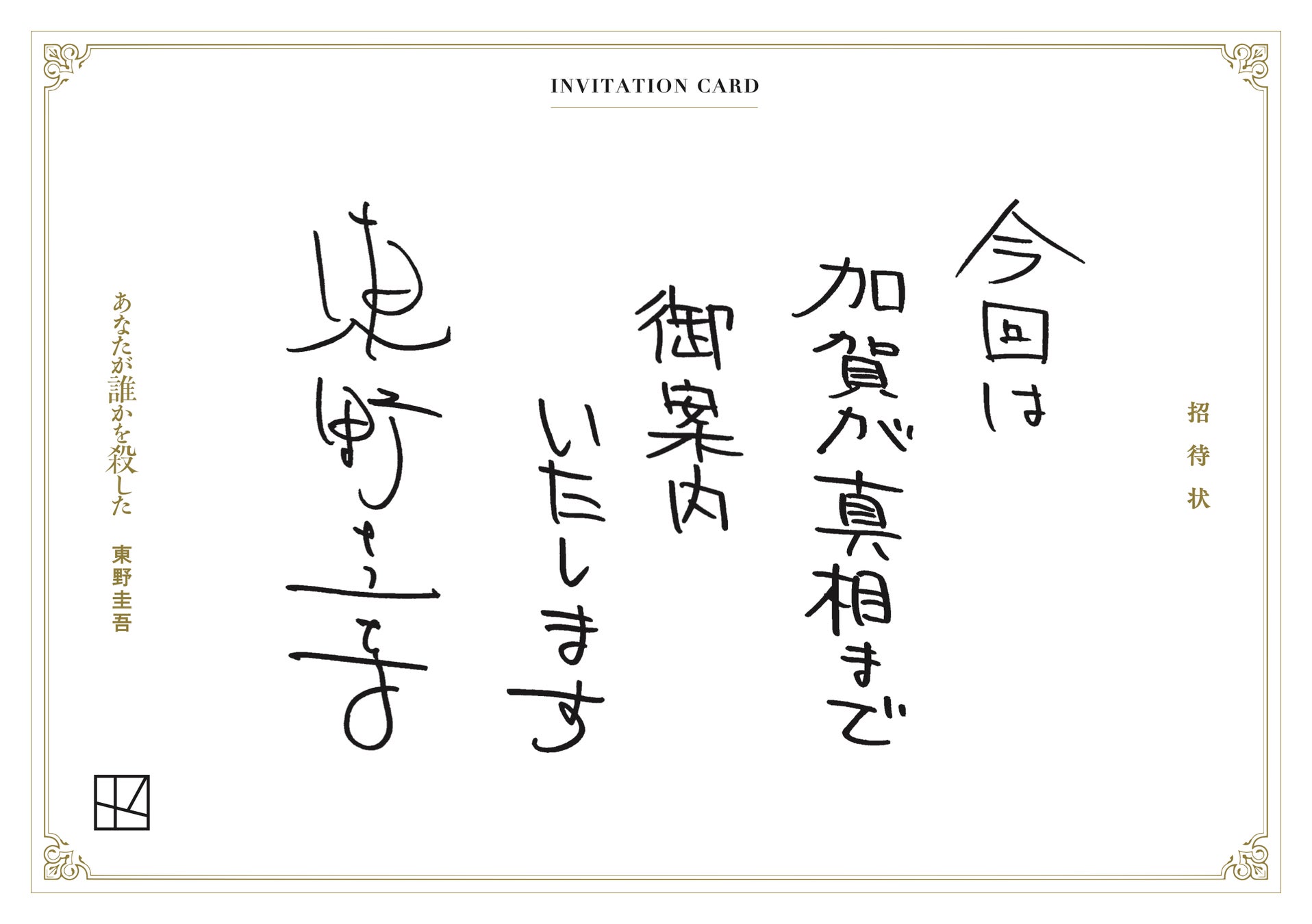 著者の東野圭吾氏から届いたのは、「今回は加賀が真相まで御案内いたします」というメッセージ。 果たしてそこに込められた意味とは!?