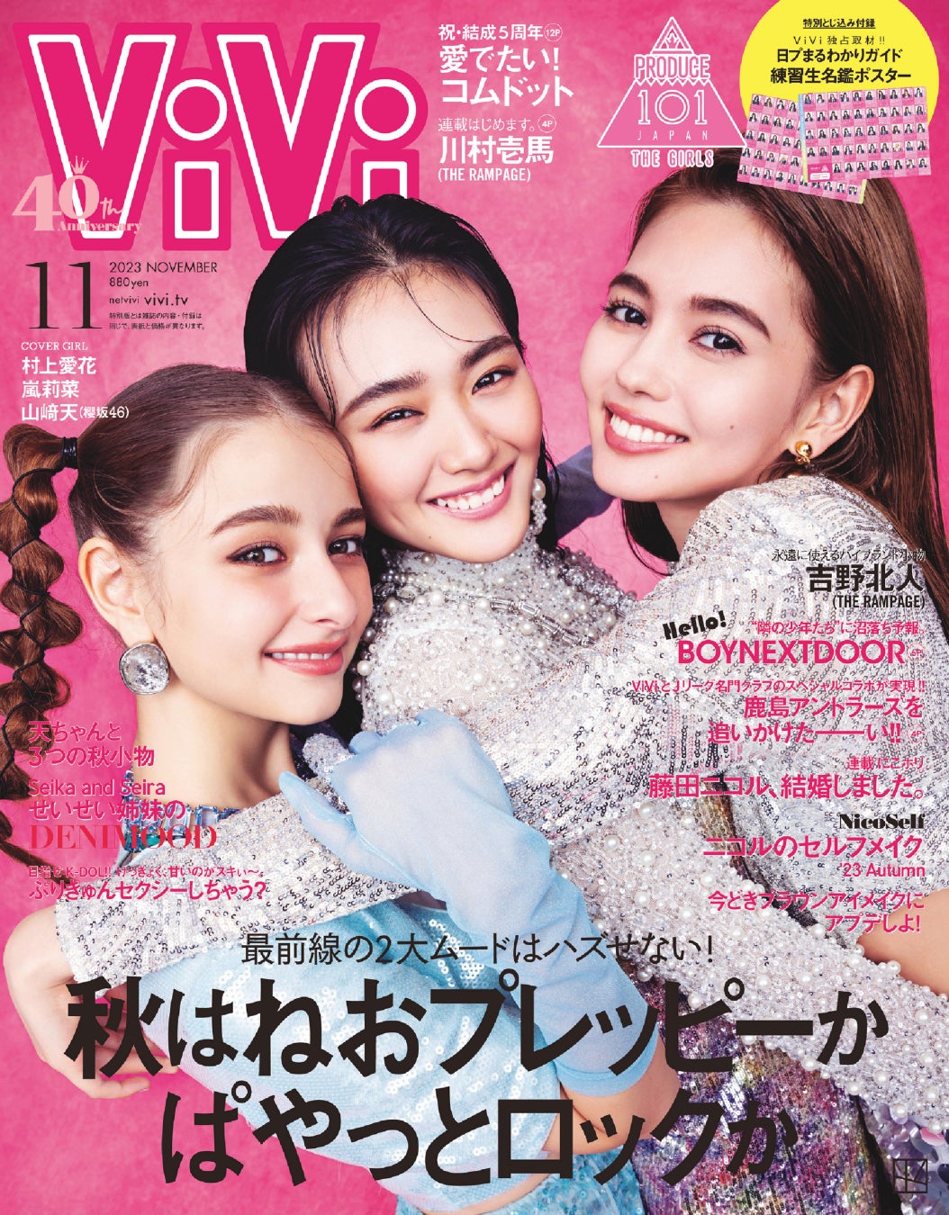 ViViモデルの中でも若手の3人、山﨑天(櫻坂46)×村上愛花×嵐莉菜が、11月号の表紙として登場!