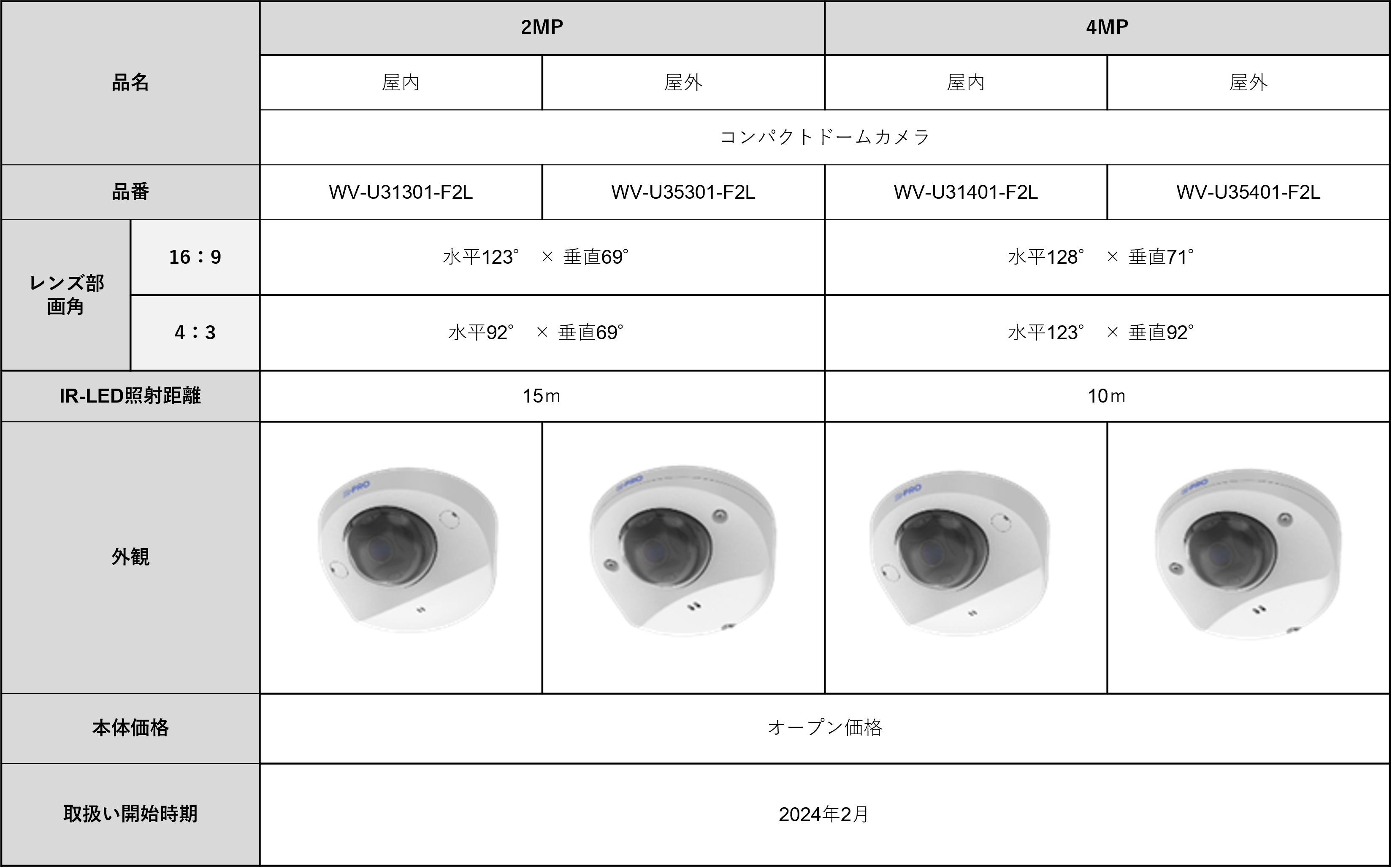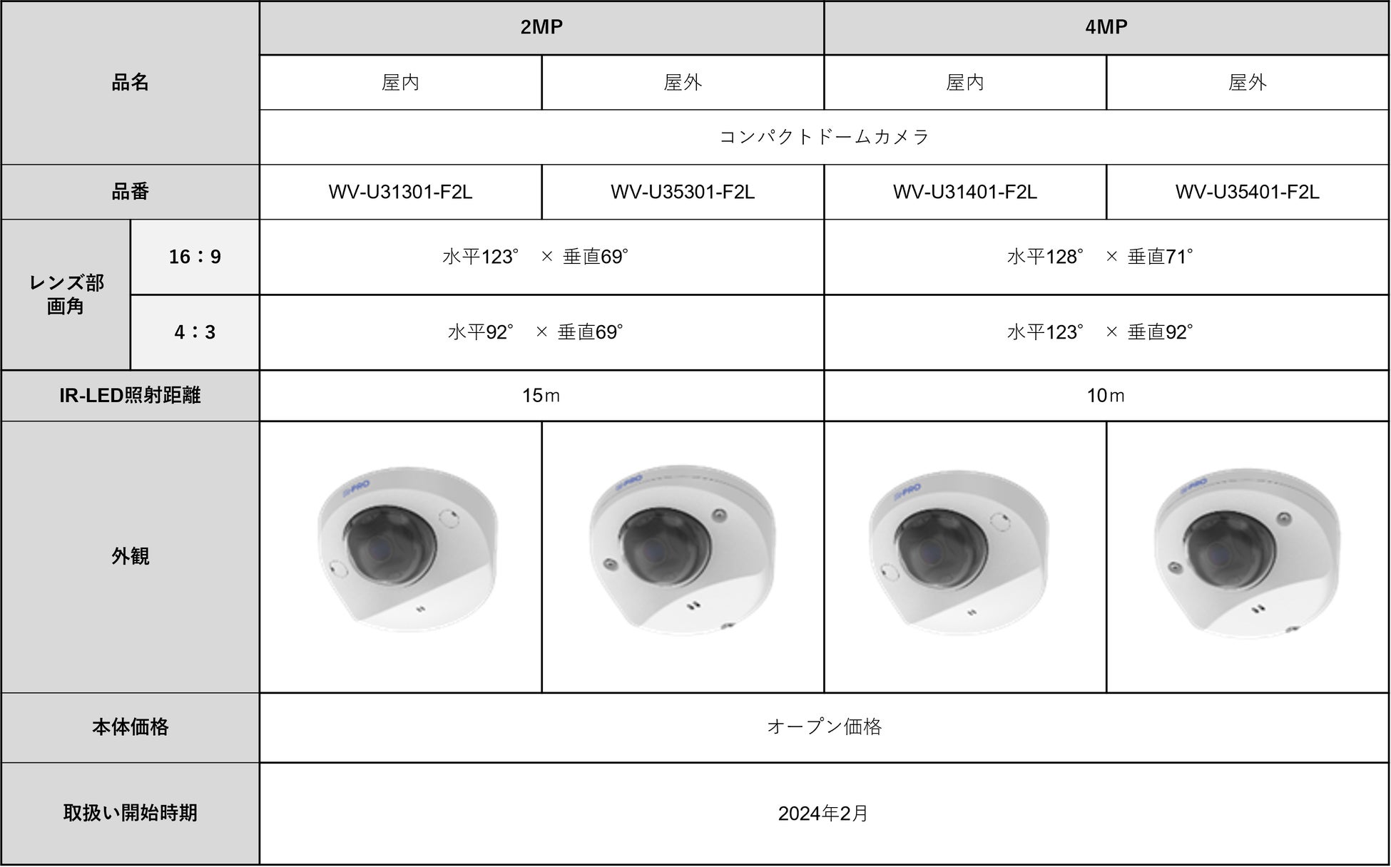 パナソニック コネクト株式会社(本社:東京都中央区、代表取締役 執行役員 プレジデント・CEO:樋口 泰行、以下、パナソニック コネクト)は、i-PRO株式会社(本社:東京都港区、代表取締役社長:尾崎 祥平、以下i-PRO)のコンパクトドームカメラ エントリーモデル「Uシリーズ」の2MP(※1)解像度モデル2機種、4MP(※1)解像度モデル2機種(以下本機種)を2024年2月より取扱い開始します。