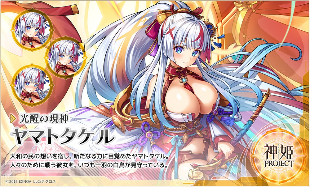 合同会社EXNOA(本社:東京都港区、CEO:村中 悠介、URL:https://games.dmm.com/)が運営するDMM GAMESにおいて『神姫PROJECT』は、「ヤマトタケル」「鈴鹿御前」が新登場する事を発表した。さらに4月14日より新しくプレミアムパスの特典が更新された。