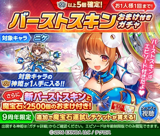 ニケのバーストスキンを獲得できる、お1人様1回までの限定ガチャです!