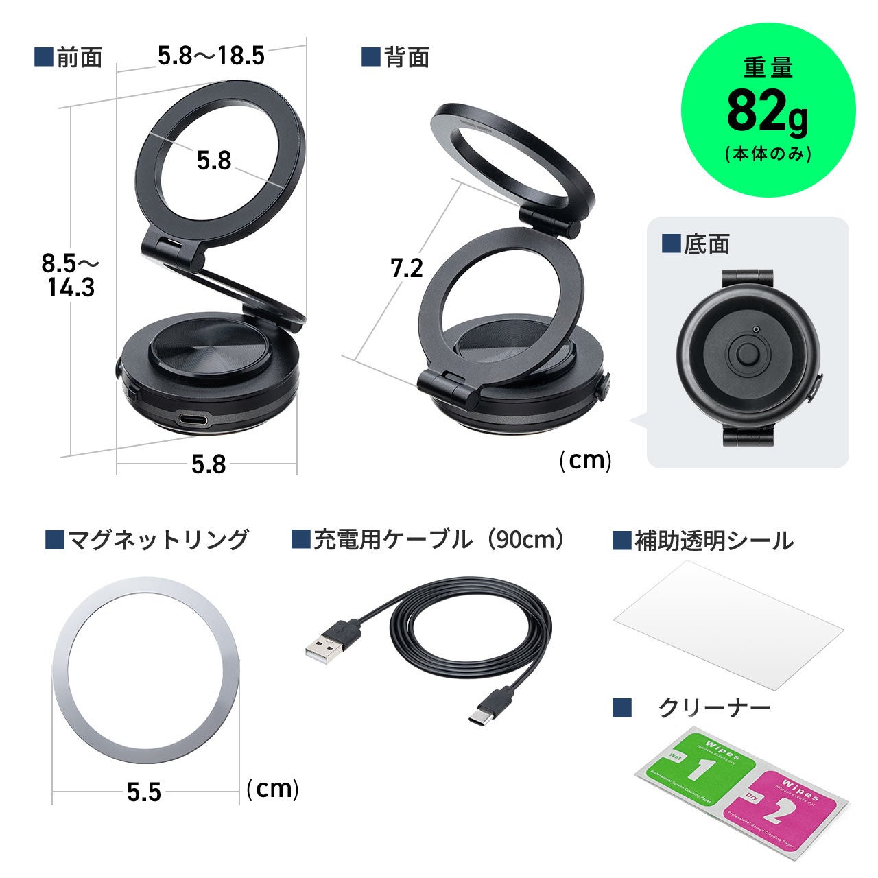 MagSafe非搭載機種でも使用できるように、貼り付けできるメタルリングが1つ付属しています。300gまでの様々なスマホを固定できます。