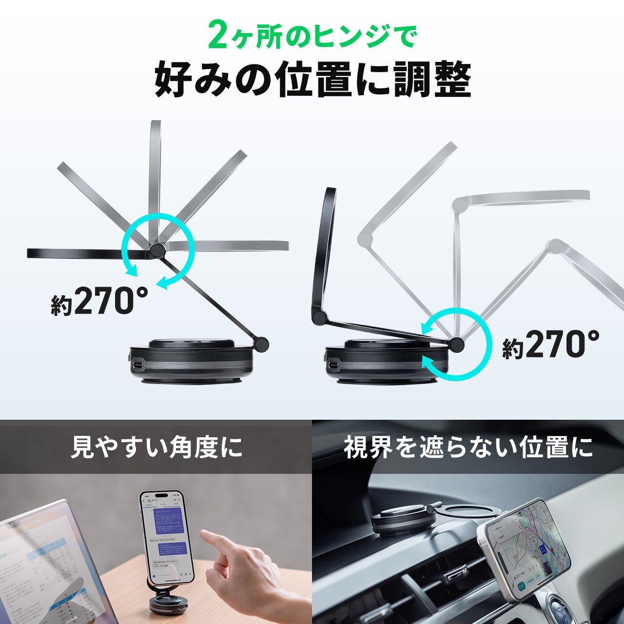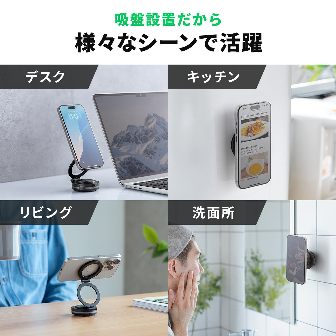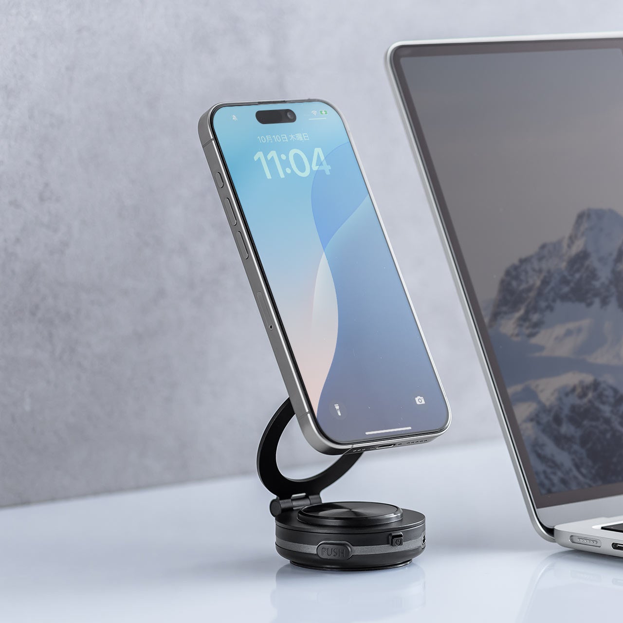 MagSafe対応スマホスタンド 電動真空吸盤 360°調整 片手操作 折りたたみ スマホホルダー 携帯スタンド 車載ホルダー iPhone Android メタルリング付属