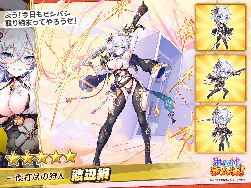 合同会社EXNOA(本社:東京都港区、CEO:村中 悠介、URL:https://games.dmm.com/)が運営するDMM GAMESにおいて、あやかし美少女たちと冒険する、迎撃型爽快スキルバトルRPG『あやかしランブル!』(https://ayarabu.jp/)は、4月30日に、新たに期間限定「★5 渡辺綱」「★5 茨木童子」を追加したことを発表しました。