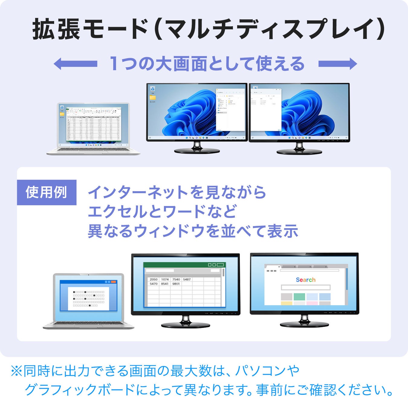 ディスプレイ2台を拡張表示したい方、デスクワークの生産性効率をアップをしたい方におすすめです。