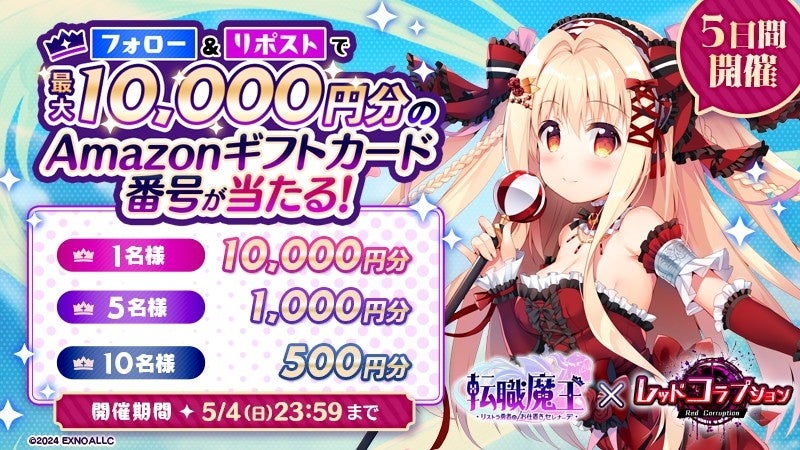 合同会社EXNOA(本社:東京都港区、CEO:村中 悠介、URL:https://games.dmm.com/)は、『転職魔王~リストラ勇者のお仕置きセレナーデ~』(以下、『転職魔王』)にて、ハーフアニバーサリー記念4大コラボの第4弾として『レッドコラプション』とのコラボイベントを開始することをお知らせいたします。