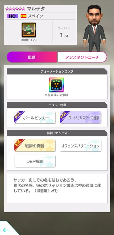 該当の選手を編成すると強くなるフォーメーションコンボ「百花斉放の砲撃隊」と、「戦術得意度Lv9」を持つ新★6監督「マルテタ」が登場!期間中に開催される特別ミッション「10試合行う」で獲得できますので、この機会をお見逃しなく!