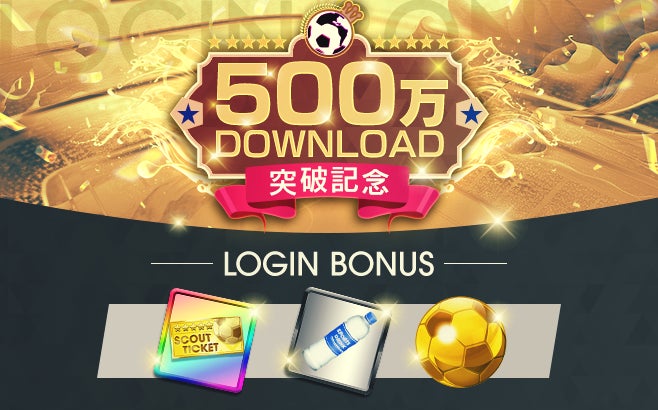 期間中のログインで、“500万DOWNLOAD記念SCOUT”にもラインナップされたイングランド強豪クラブの現役選手たちの★4バージョンが、1日ログインするごとに1名ずつ、合計5名獲得できます。