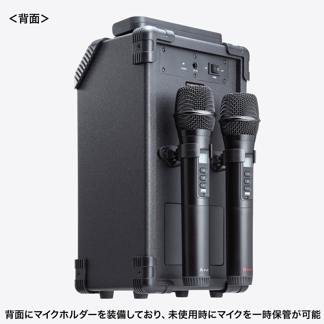 マイク未使用時に一時的に保管できる、ホルダーが付いています。