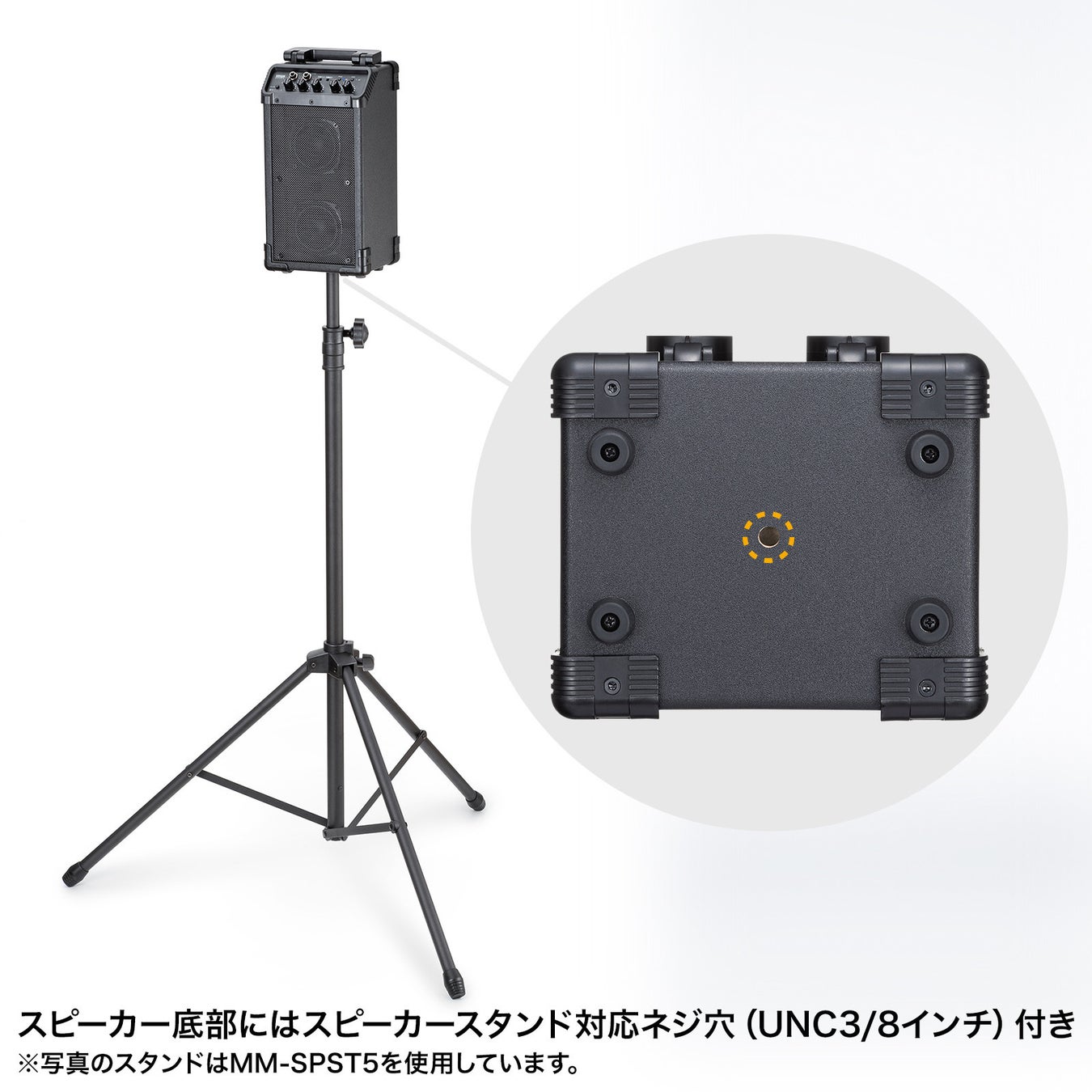 別売のスピーカースタンド(MM-SPST5)を使用することで、より広範囲に拡声できます。