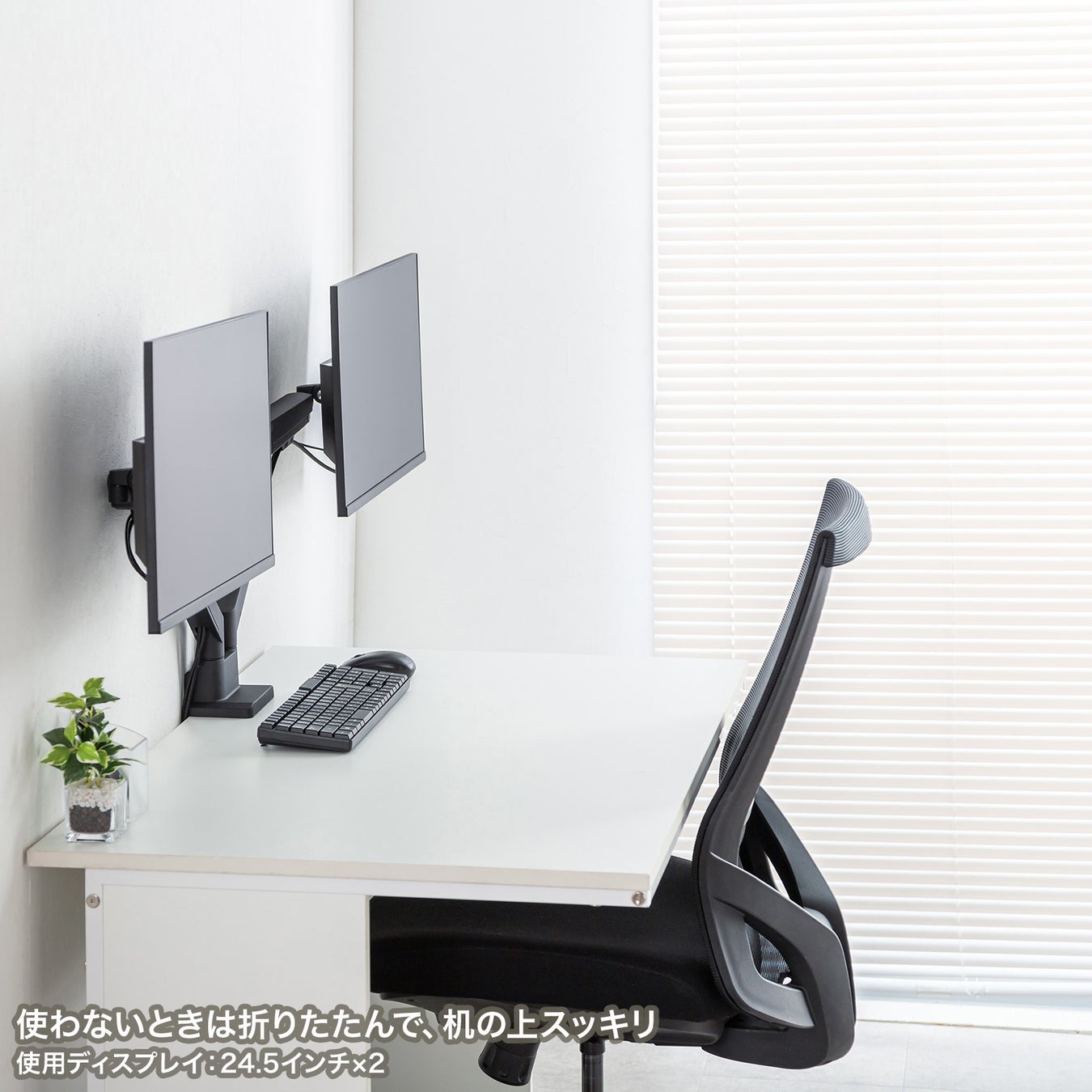 品名:モニターアーム(デュアル・ガススプリング式・薄型ショートクランプ)