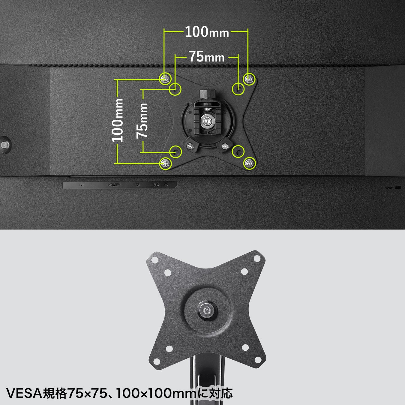 軽量タイプから大型モニターまで、幅広いモニターを安定して支えることができます。
