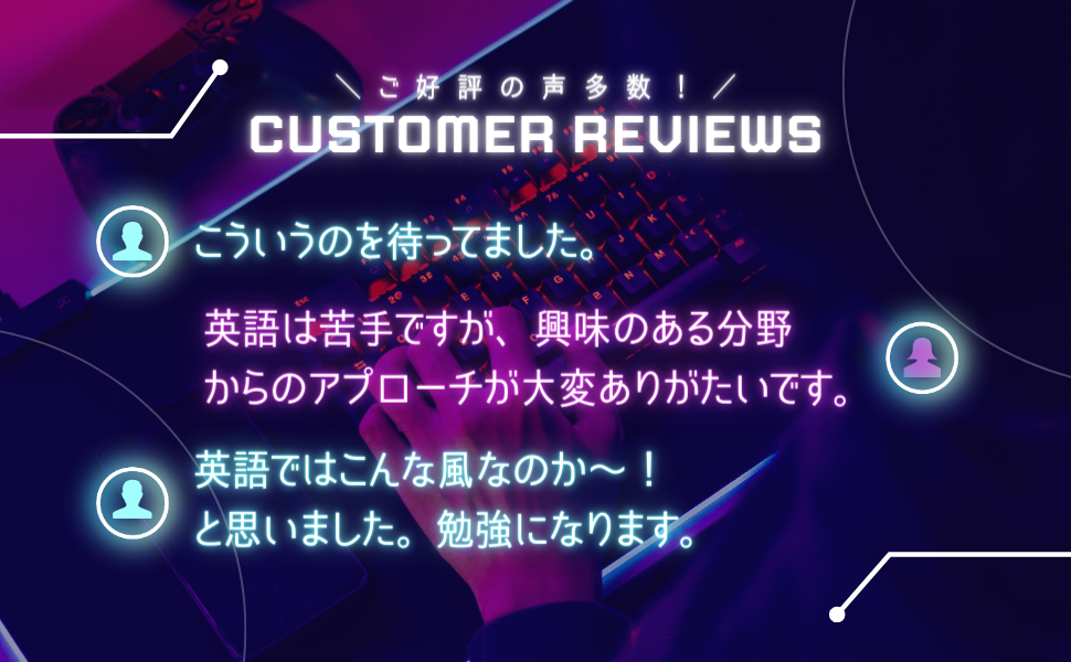 本書は発売後も、「こういうのを待ってた!」「用語が詳らかで場面などもわかりやすい」とご好評をいただいております。また英語がニガテな方からも「興味のある分野からのアプローチがありがたい!」といった声もありました。