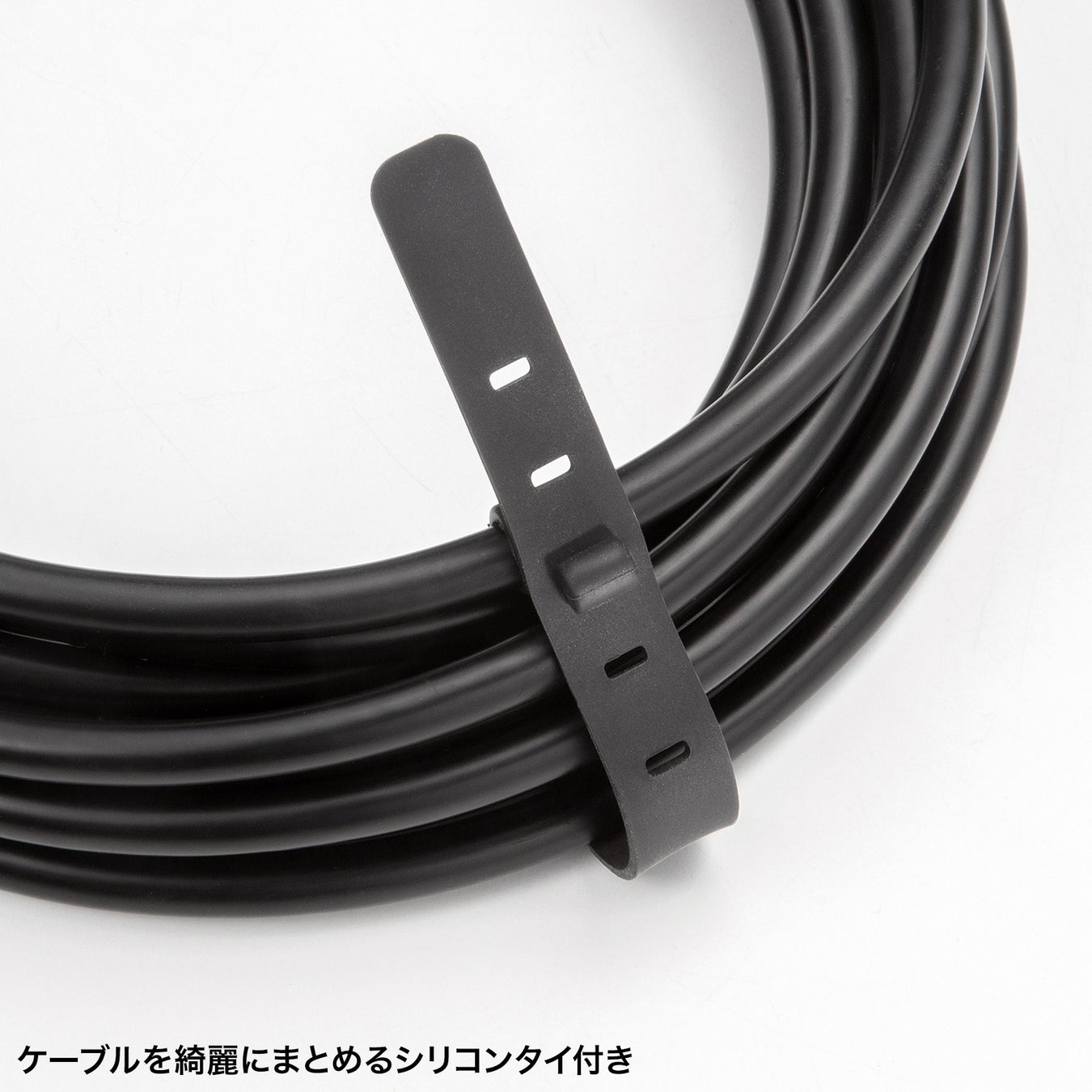 ケーブルを綺麗にまとめる、シリコンタイ付きです。