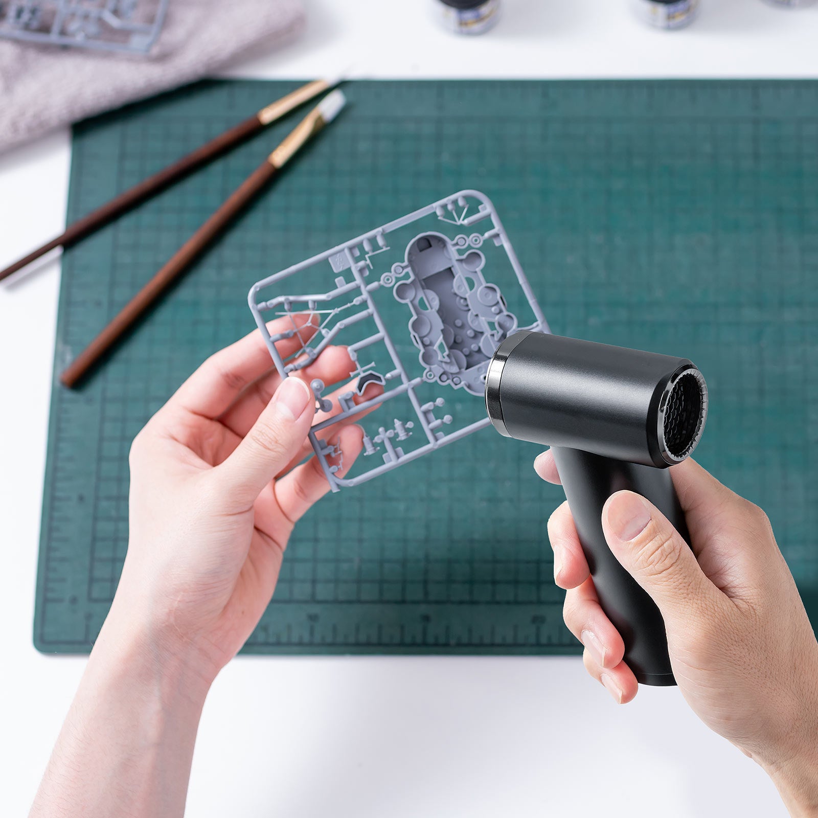 風速は6~27m/sの間を無段階で調整することが出来ます。スライドスイッチで調整するため操作がしやすくなっており、キーボードからエアコン、窓のサッシにサーキュレーターなど様々な場所で使用することが出来ます。また、本体は持ちやすいガンタイプのデザインになっています。