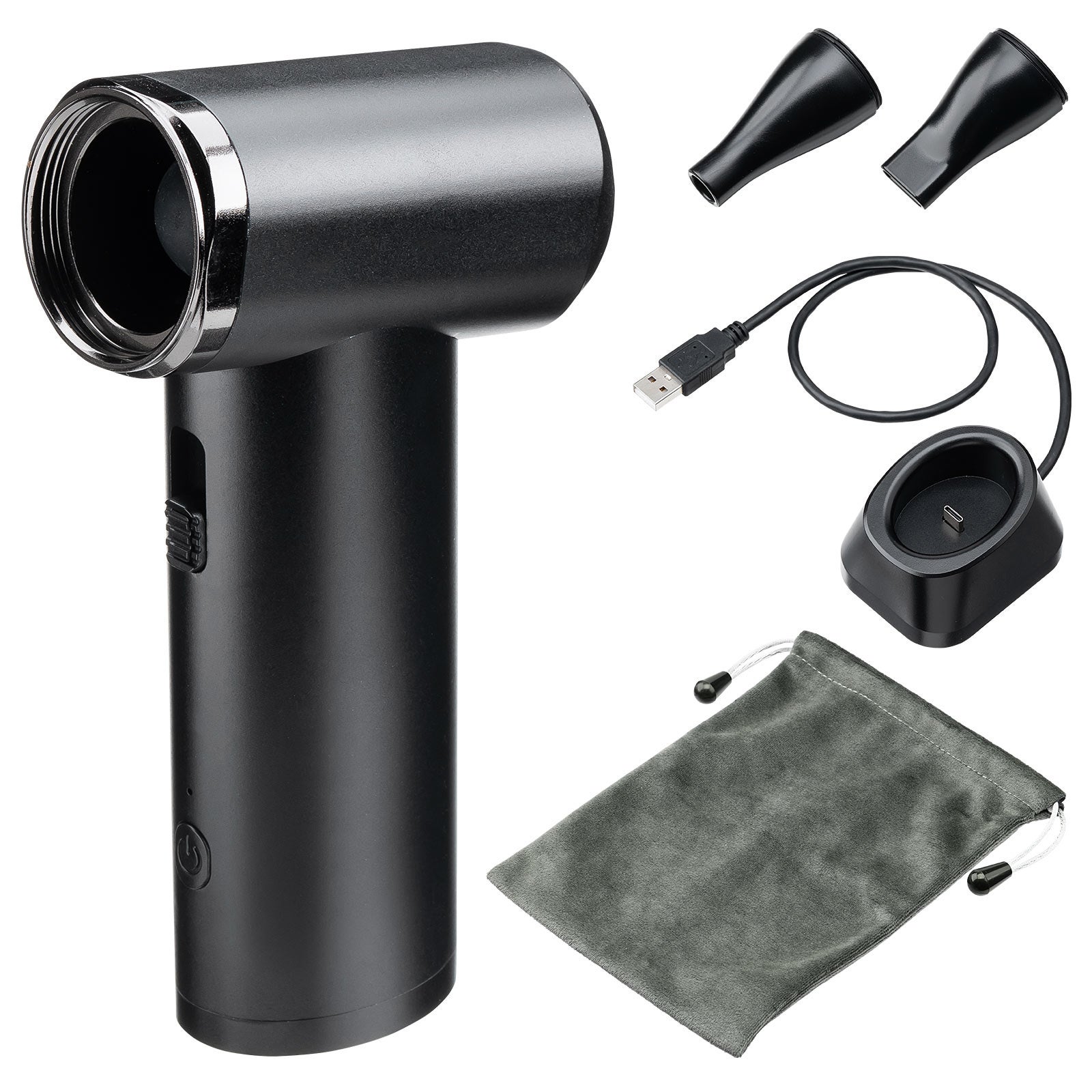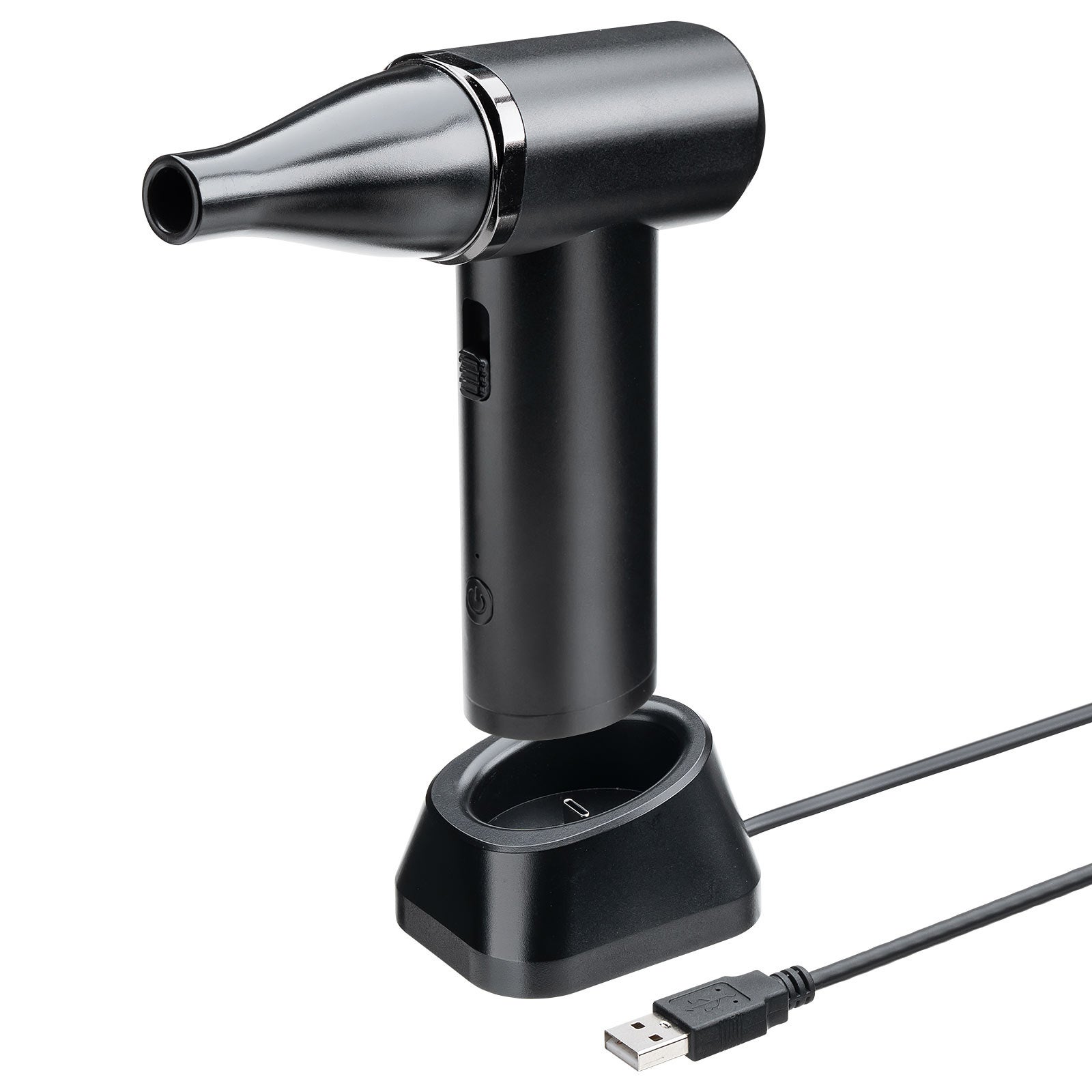 電動エアダスター 充電スタンド 風量無段階調節 ノズル2種類 小型 ガス不使用 TypeC充電 逆さ噴射可能 クリーナー PC掃除 ブラック