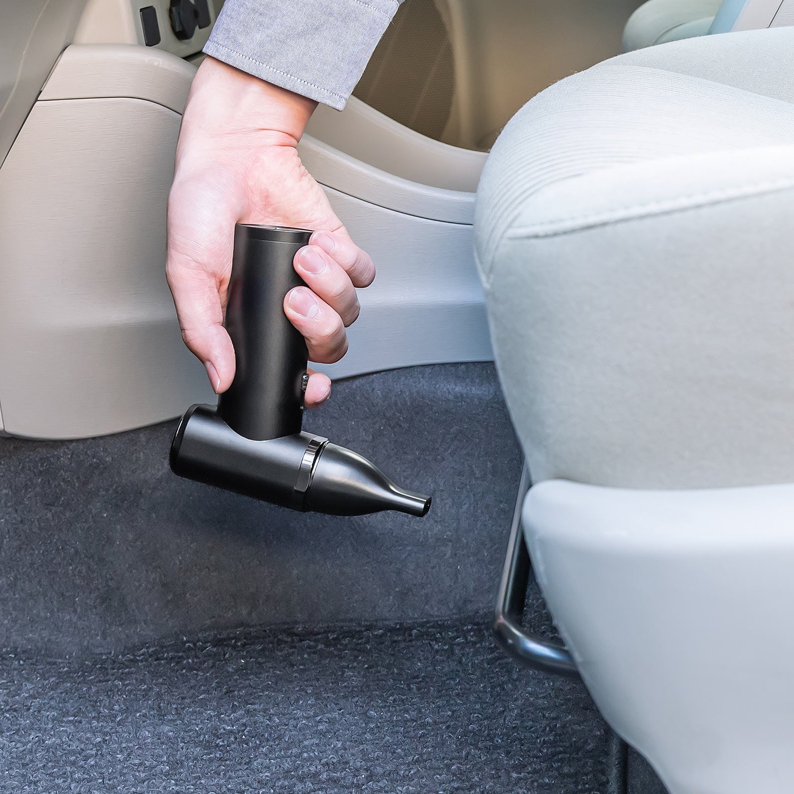 本体は持ちやすいガンタイプデザインで、どの向きでも使用することができ、逆さ噴射にも対応しています。高級感あるアルミボディを採用しており、耐久性にも優れています。また、待機モード搭載で電源の入れ直しの手間が不要。