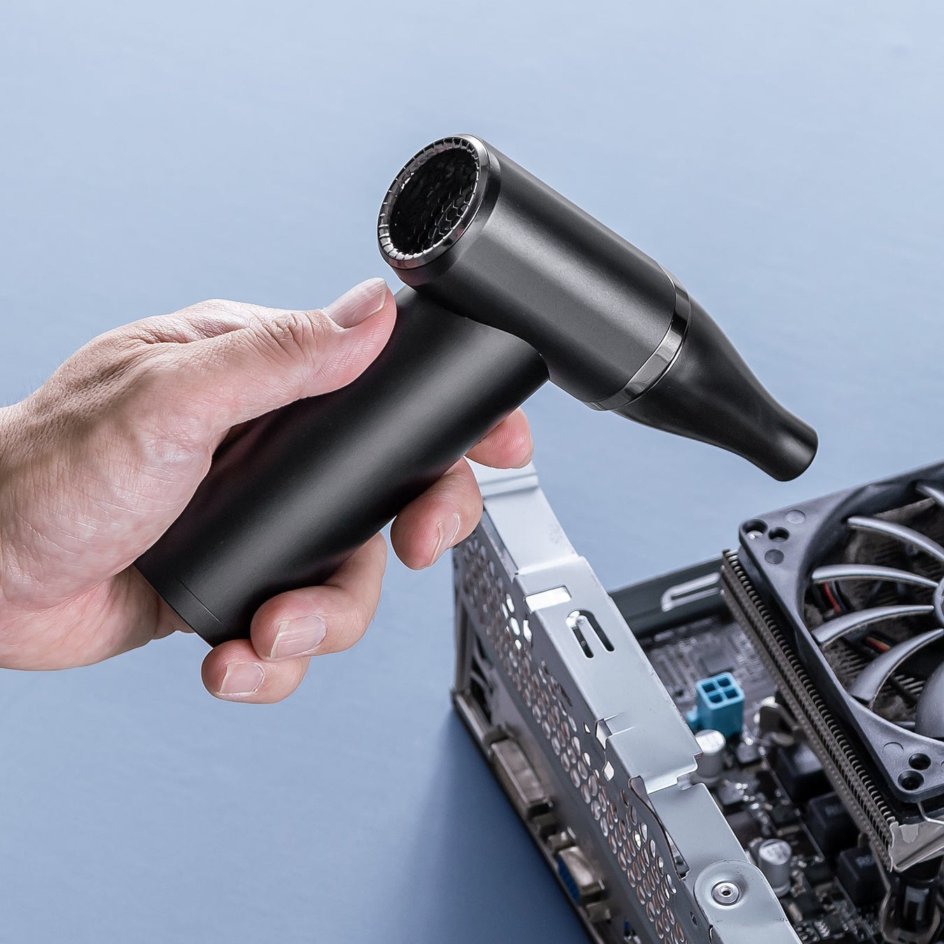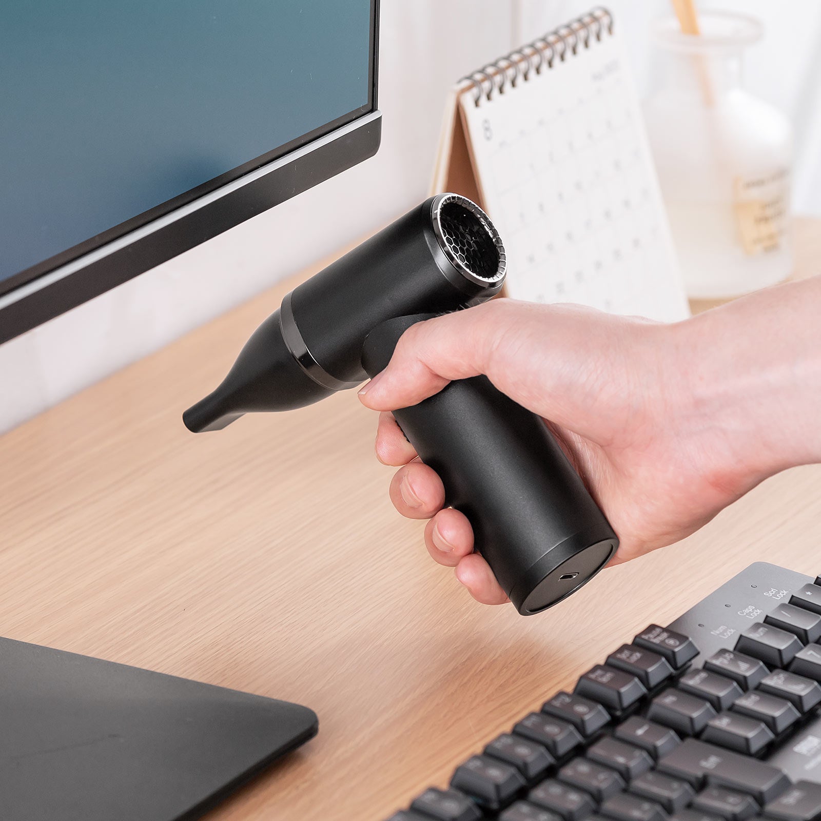 電動エアダスターは充電をすることで繰り返し使用できるため、缶タイプと比べ経済的で環境にやさしいです。また、ガスを使用しないため、匂いや火気による危険が無くとても安全で、空き缶の処理などの手間もかかりません。