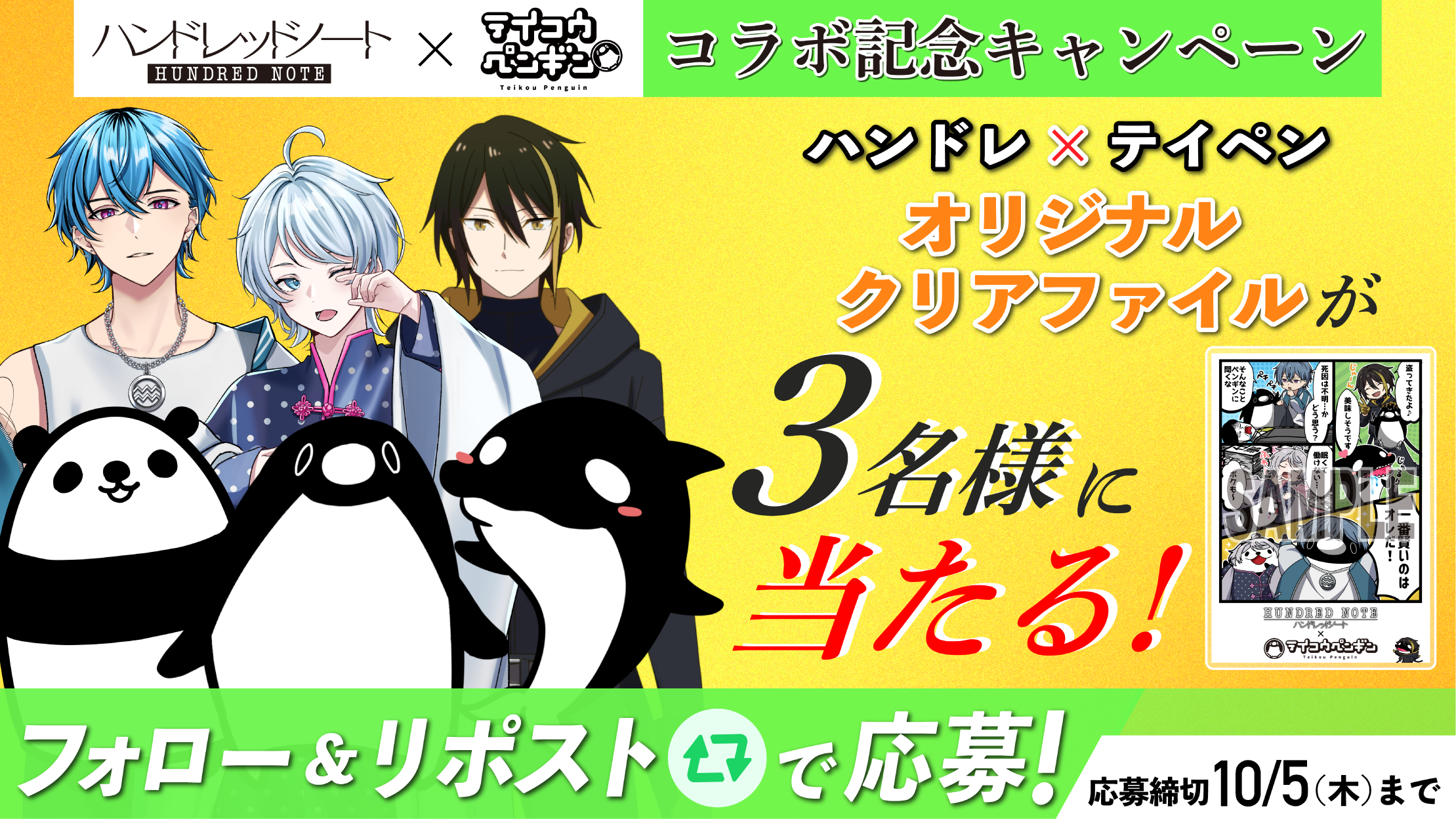 コラボを記念して、「テイペン」×「ハンドレ」のオリジナルクリアファイルのプレゼントキャンペーンを9/22(金)よりスタートいたします。キャンペーンの詳細は公式X(旧Twitter)にて発表予定です。