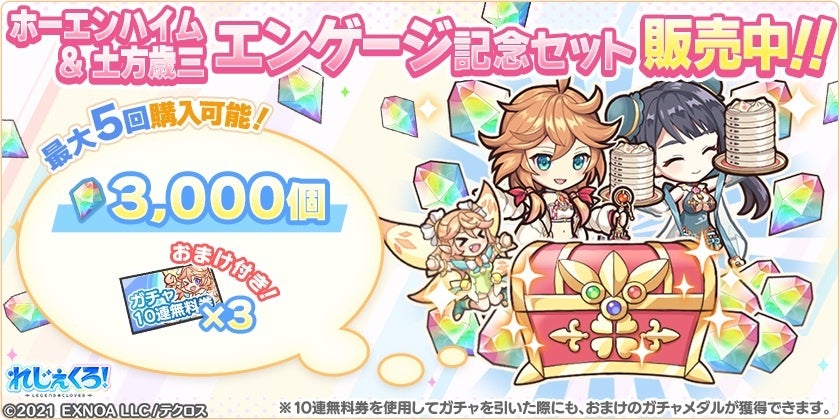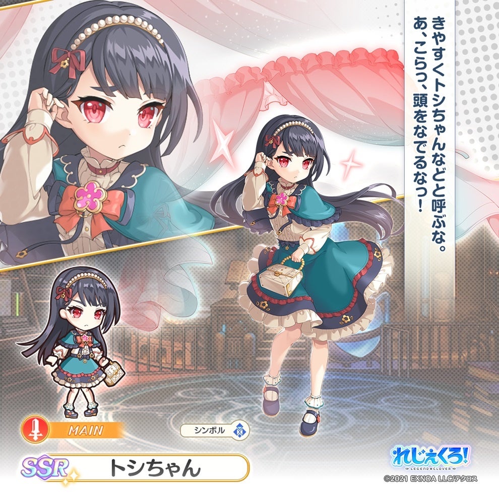 合同会社EXNOA(本社:東京都港区、CEO:村中 悠介、URL:https://games.dmm.com/)が運営するDMM GAMESにおいて、真の英雄となる王道ファンタジー『れじぇくろ!~レジェンド・クローバー~』(https://www.legend-clover.net/)にて、とある実験に巻き込まれ小さい頃の姿になってしまった「ホーエンハイム」と「トシちゃん」が新たに登場!さらに彼女たちが活躍するイベント「失敗は愛しさのもと」が開催!
