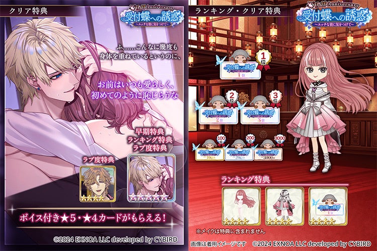 DMM GAMES「夢幻楼と眠れぬ蝶」ゲーム内イベント「受付蝶への誘惑 ~エッチな彼に気をつけて~」と 「深くて甘い吐息ガチャ」を開催!
