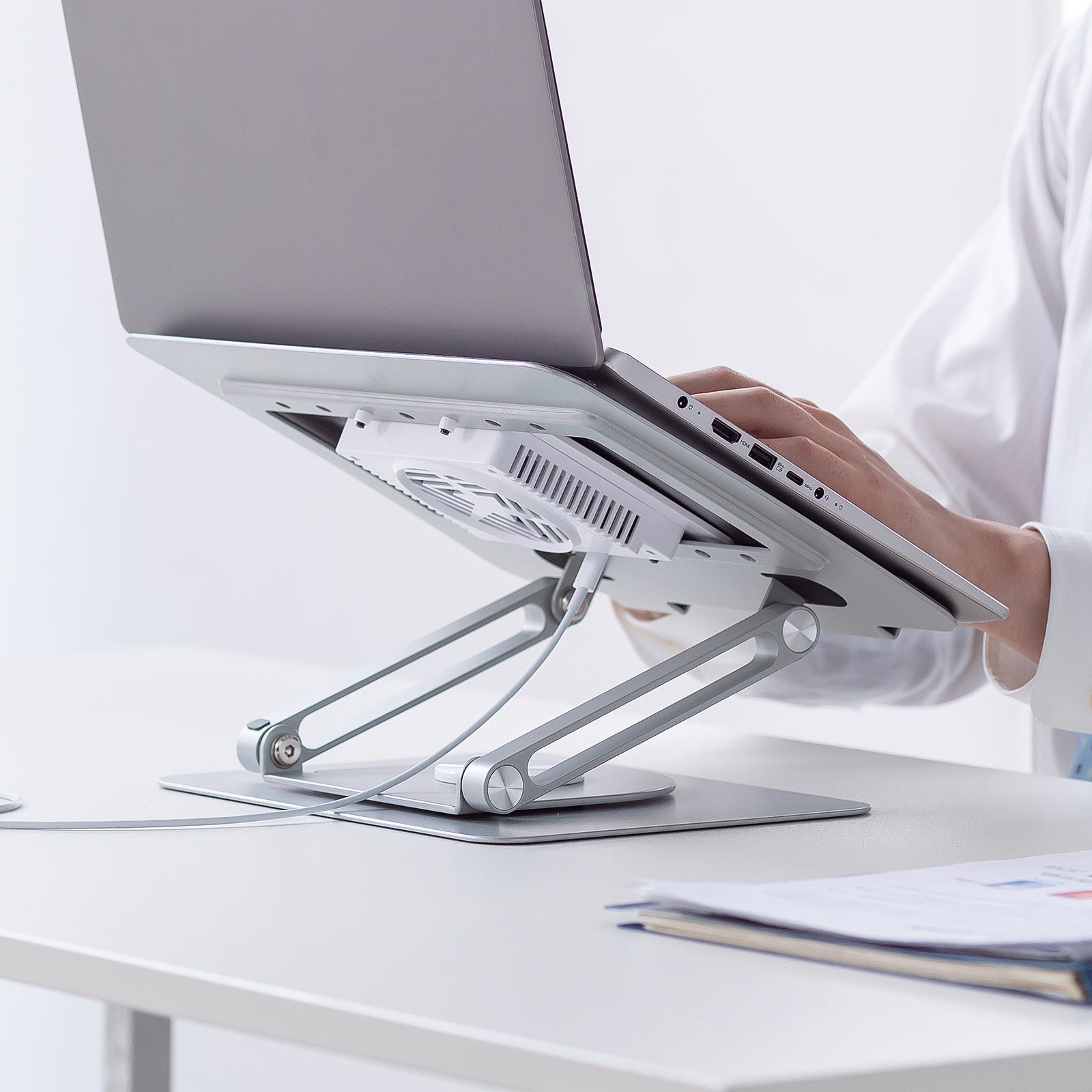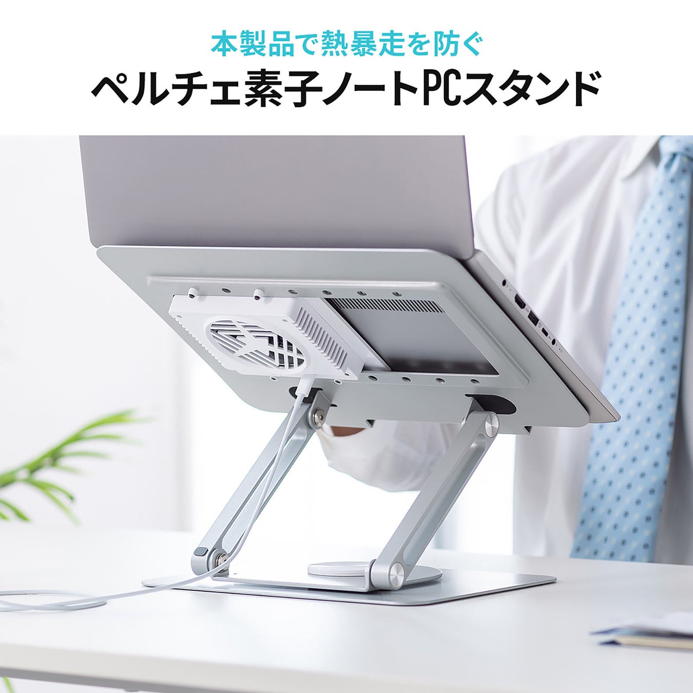 17.3インチ対応スタンドで高さ・角度・向きを無段階調整できるペルチェ素子で熱源を瞬間冷却、熱暴走を防ぐノートPCクーラー