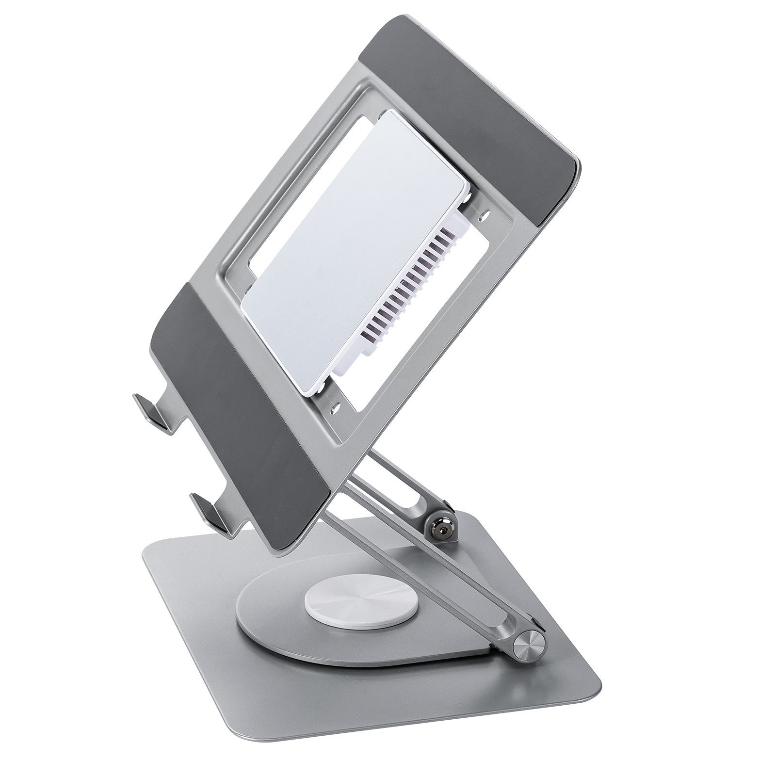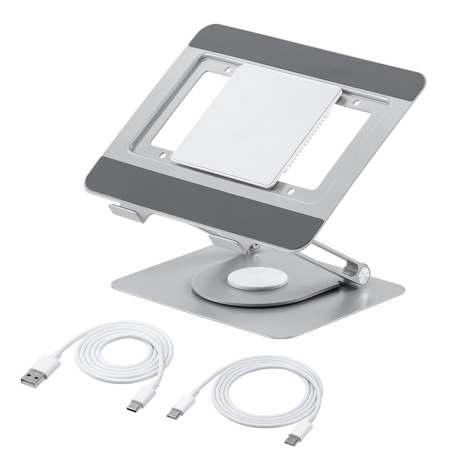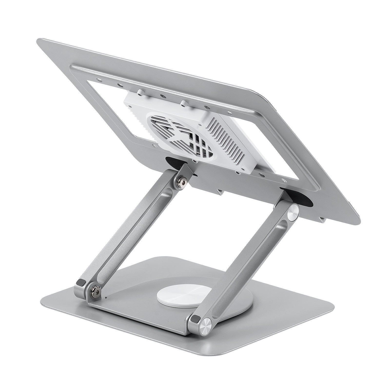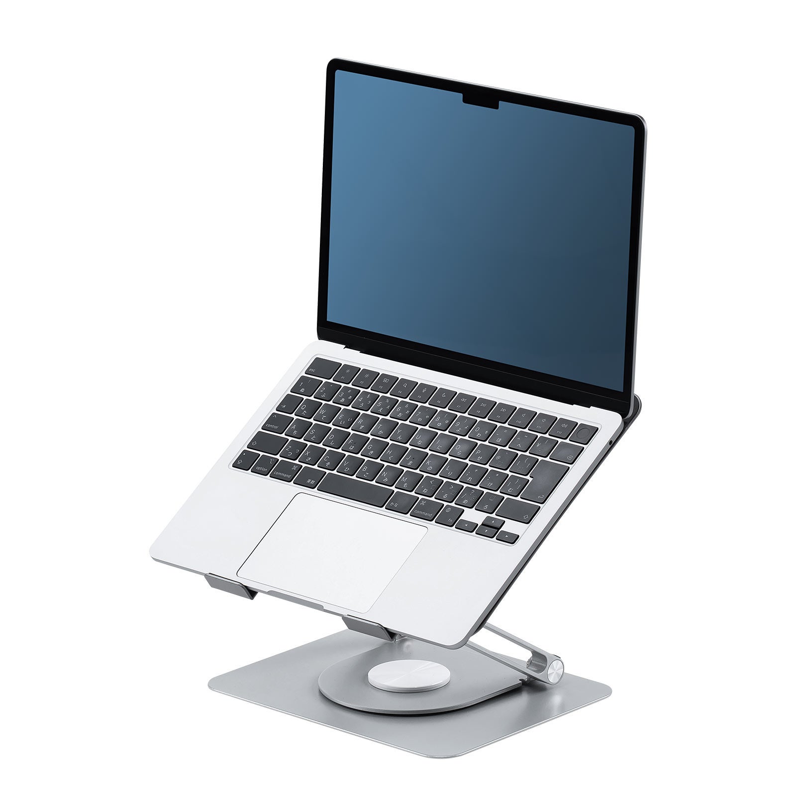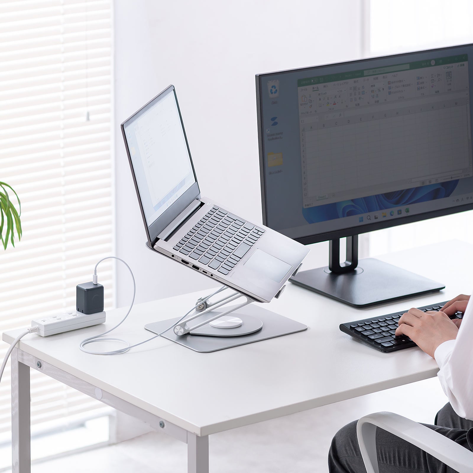 作業環境に合わせて、スタンドの高さと角度を細かく調整可能。2つの関節でなめらかに動き、理想の姿勢を実現します。さらに、台座は360度回転式。どんなワークスペースにもフィットし、Web会議やプレゼンにも便利です。
