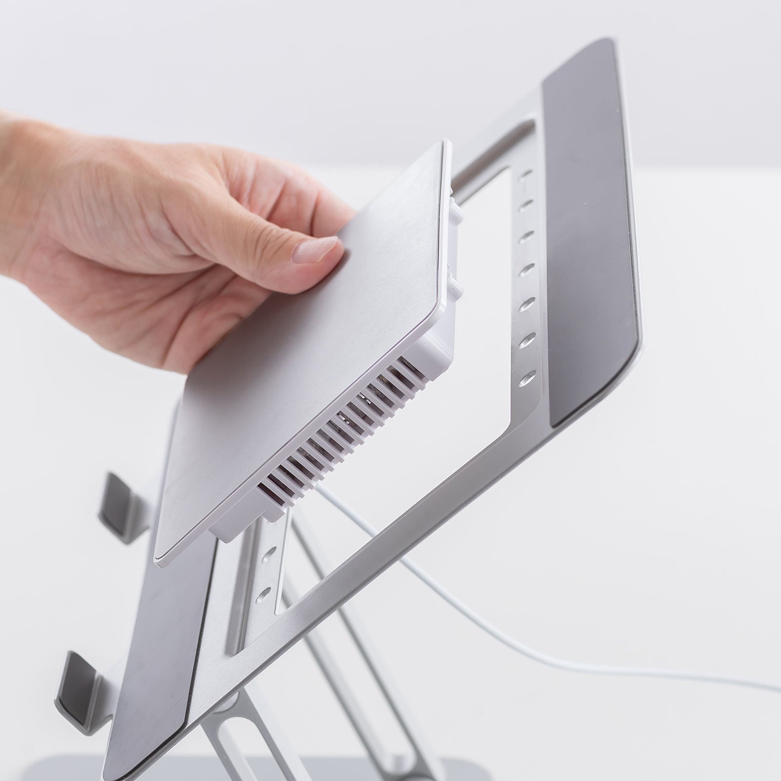 パソコンやタブレットの熱源は機種により異なります。そこで本製品は、冷却プレートの位置を自由に調整可能。CPUやバッテリー部分など、熱の発生源を狙って効率よく冷却できます。