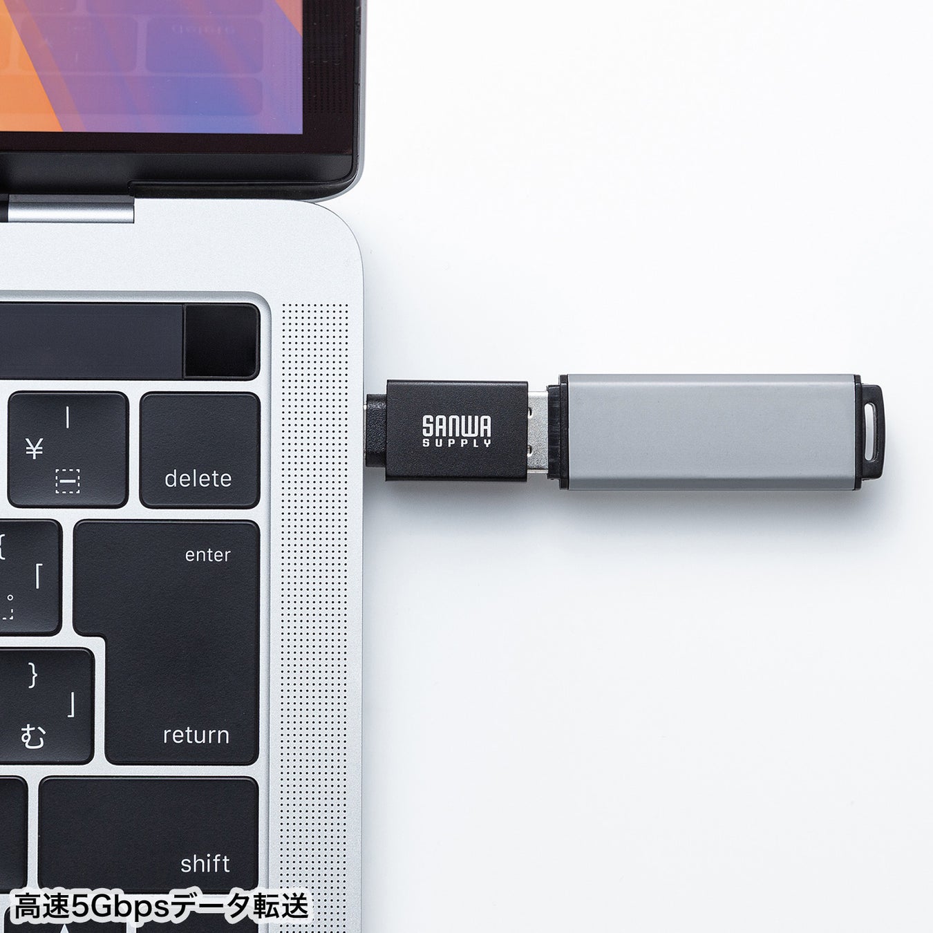 最大5Gbpsの高速データ転送に対応し、大容量ファイルもスムーズにやり取りできます。
