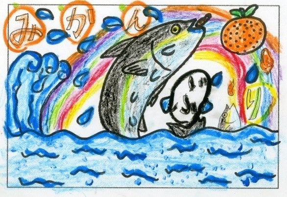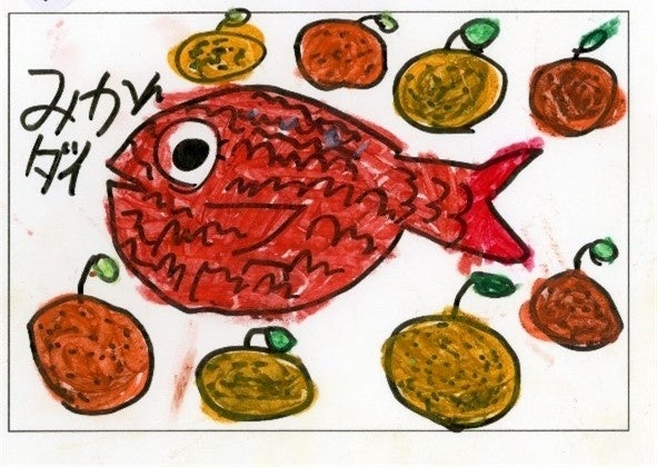 愛媛県特産の「みかんジュース」の加工時に大量に発生・廃棄される皮を餌料として有効活用したプライドフィッシュ「みかんブリ」「みかん鯛」を販売します。この度、これら“みかん魚”の魅力を全国へお伝えしたいという思いのもと、宇和島市立吉田小学校の児童が描いたイラストを商品の販促シールとして使用します。