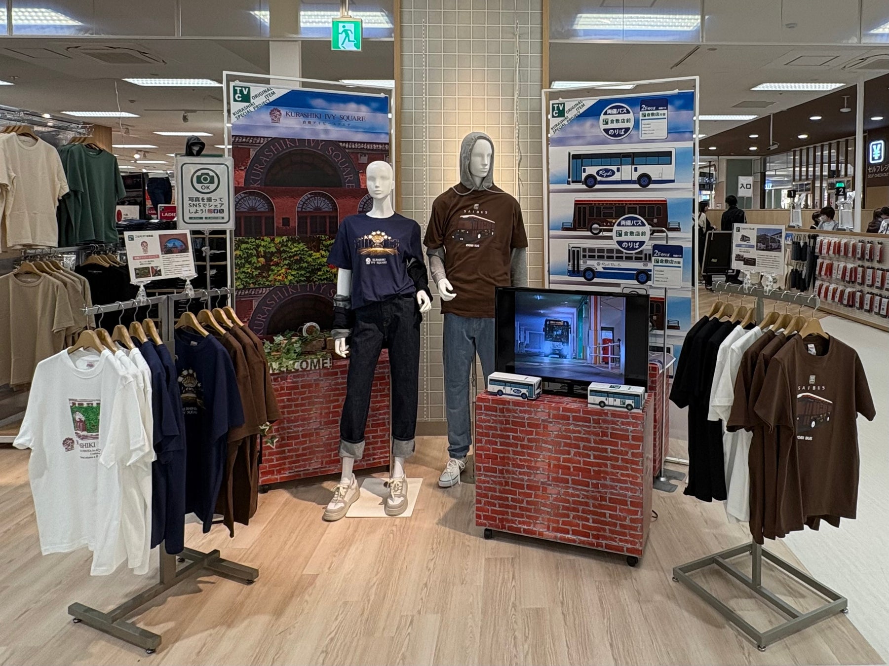 倉敷地域フィット企画として、 「倉敷アイビースクエア」 「両備バス」とコラボレーションしたデザインTシャツを、当店限定販売します。色柄を控えめにし、日常使いができるシンプルなデザインです。