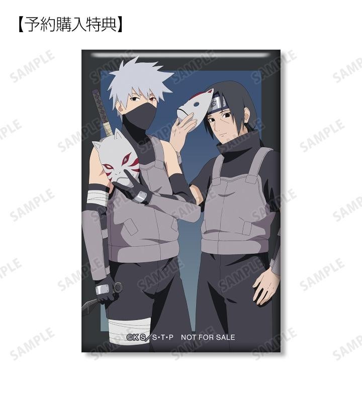 当商品を1BOX、または単品にて1BOX相当数ご注文ごとに、予約購入特典として「描き下ろしイラスト はたけカカシ&うちはイタチ 過去と現在ver. スクエア缶バッジ AMNIBUS限定特典」を付属いたします。