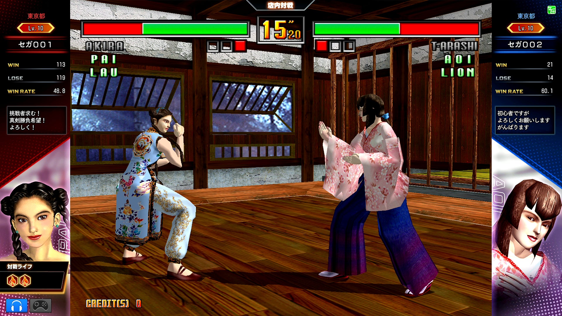 『Virtua Fighter esports』アーケード版で培ったオンライン技術を基に、ゲームバランスはそのままに3tbでもオンライン対戦を実現。当時の対戦そのままに全国の猛者たちとオンライン対戦が可能となりました。また、Aimeカード対応により、当時の3tbでは実現していなかったプレイヤーネームや戦績の表示(VF3tb Online.NETで編集・閲覧可能)が可能になりました。