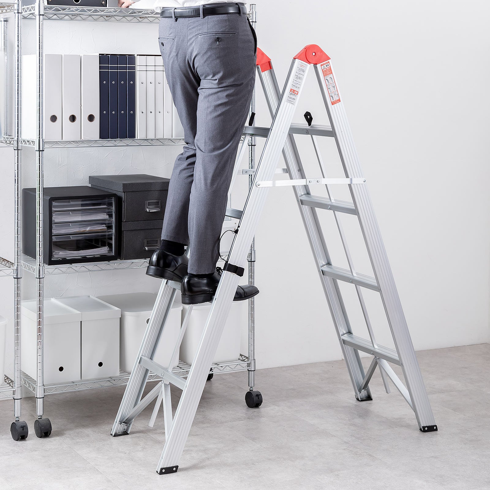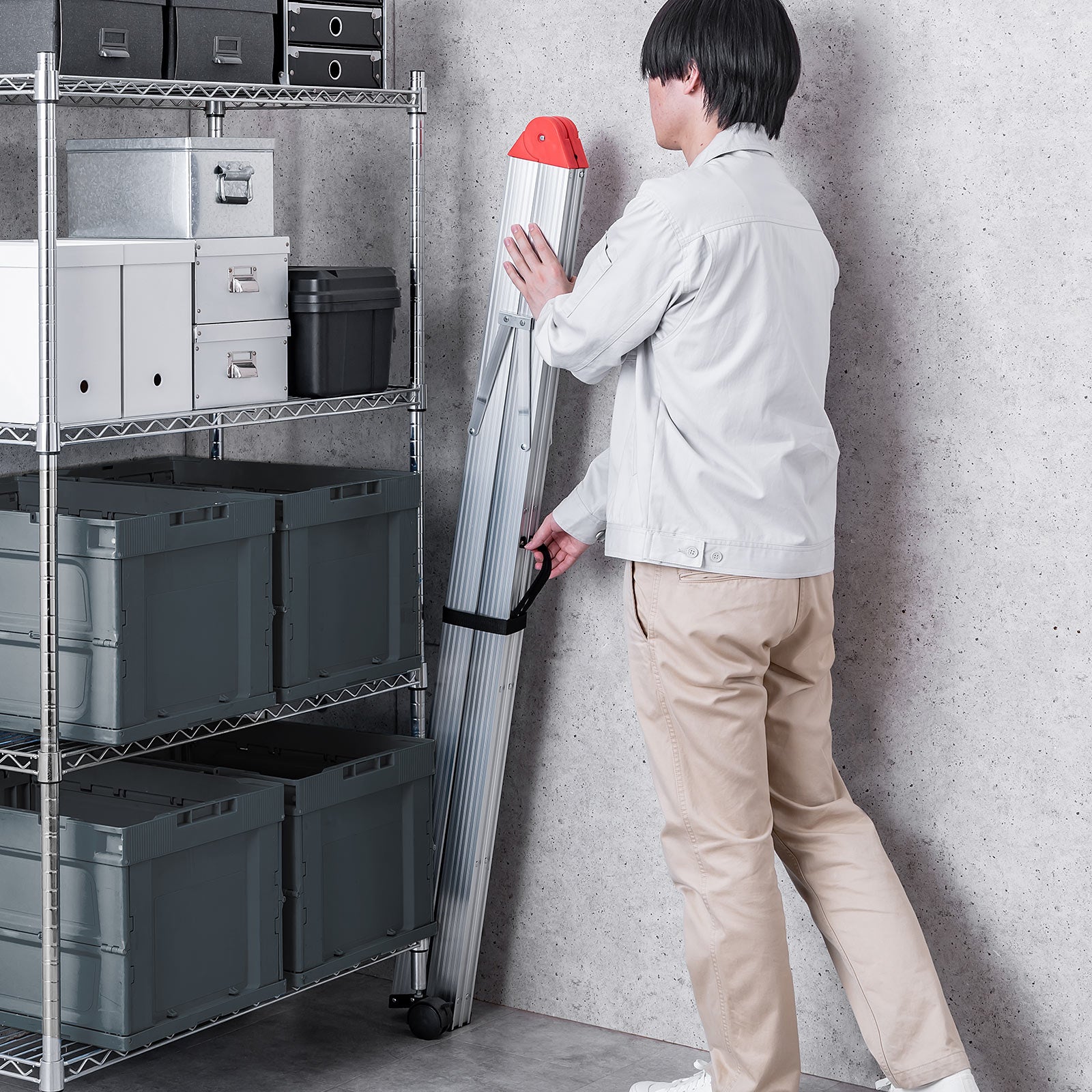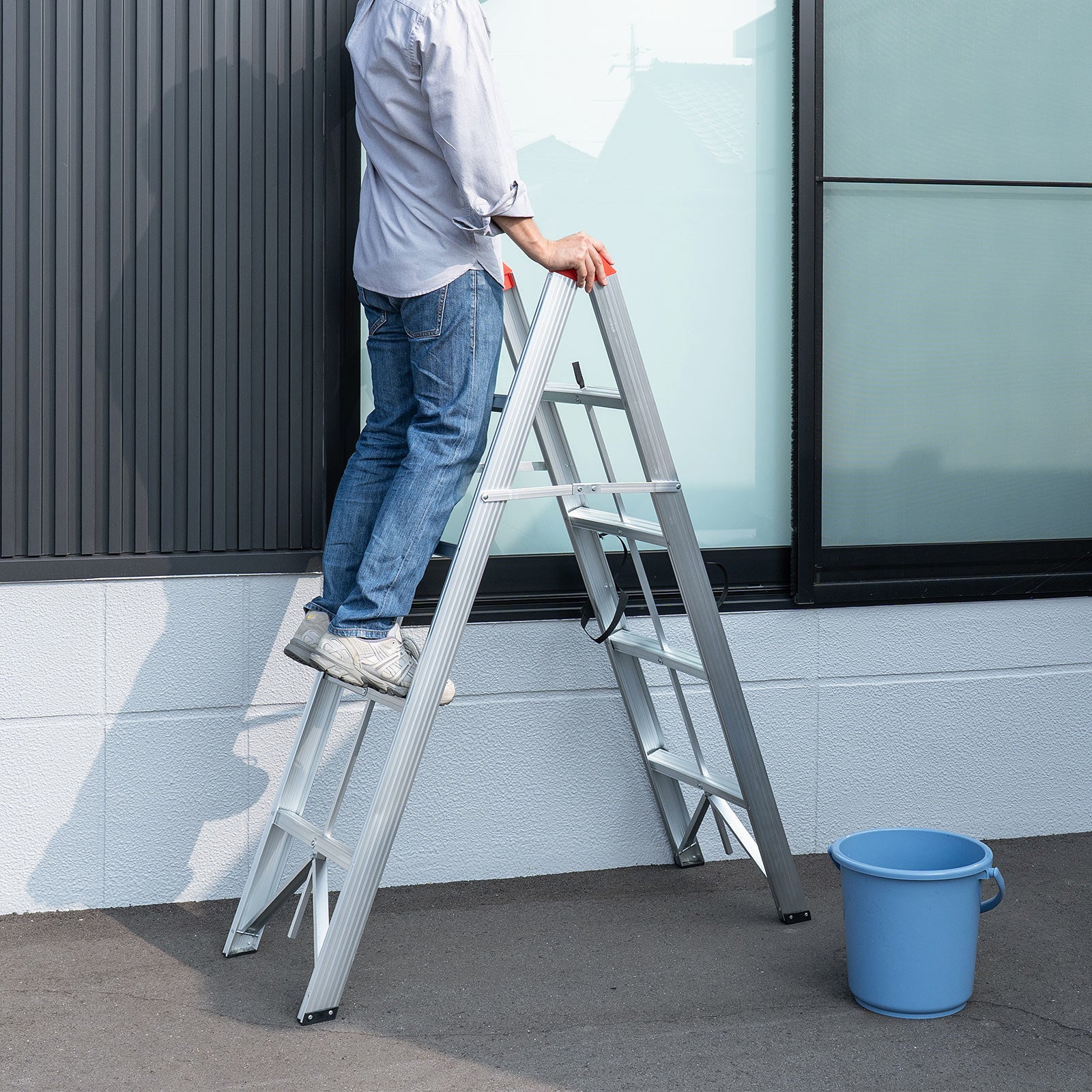 従来の3段脚立では届きにくかった場所も、この4段タイプならラクにアクセス可能。高所の棚や天井、照明器具のメンテナンスなど、幅広い用途に対応。家庭でもオフィスでも活躍する1台です。