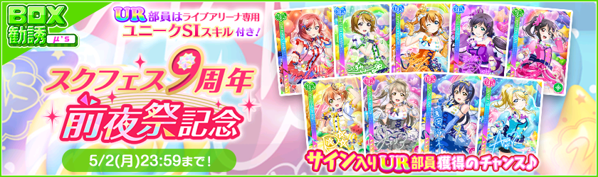 - 9周年前夜祭!SR以上確定BOX勧誘〜μ's〜