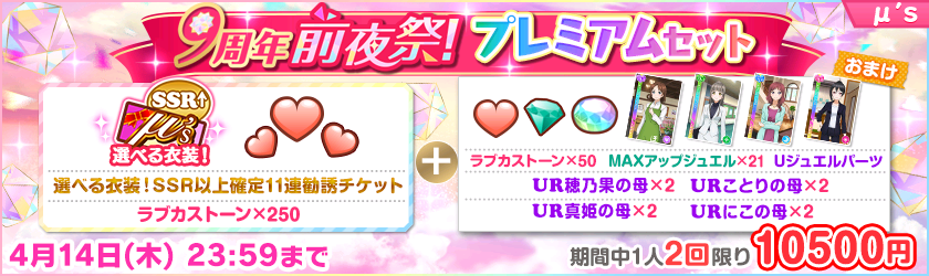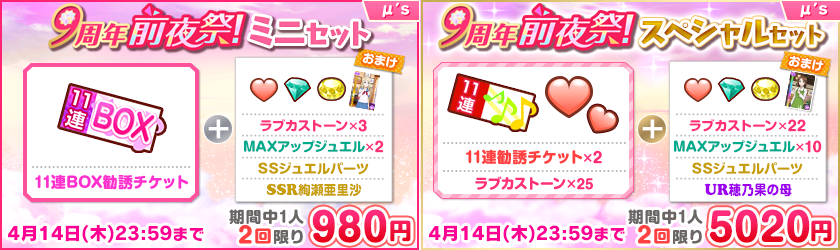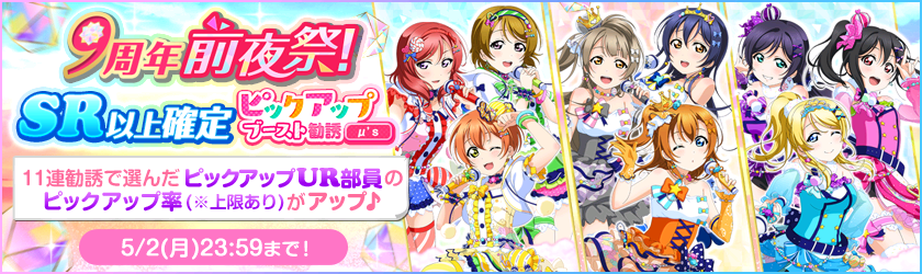 - 9周年前夜祭!SR以上確定ピックアップブースト勧誘〜μ's〜