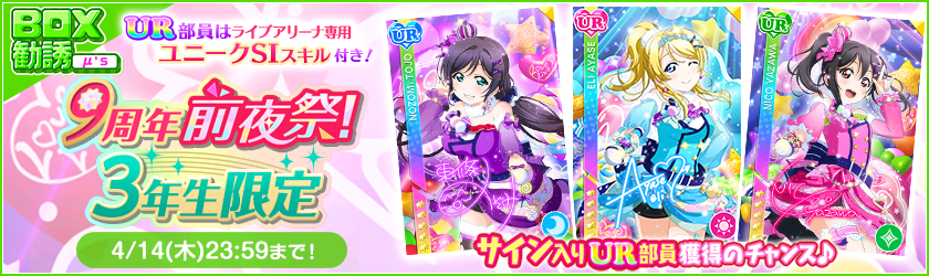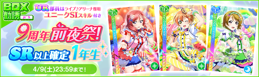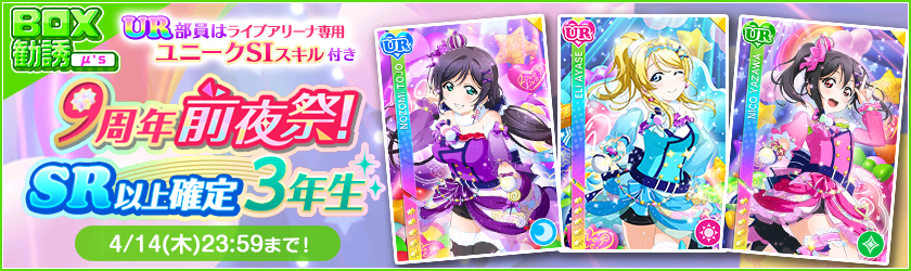 - 9周年前夜祭!SR以上確定BOX勧誘〜μ's〜3年生