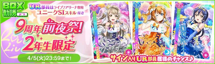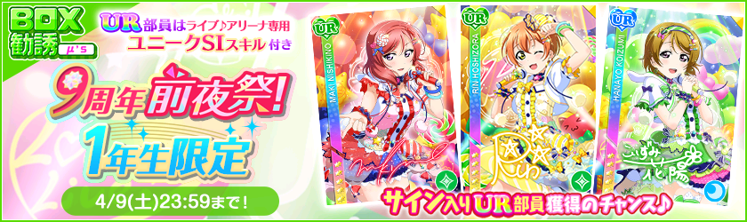 ・9周年前夜祭!SR以上確定BOX勧誘〜μ's〜2年生