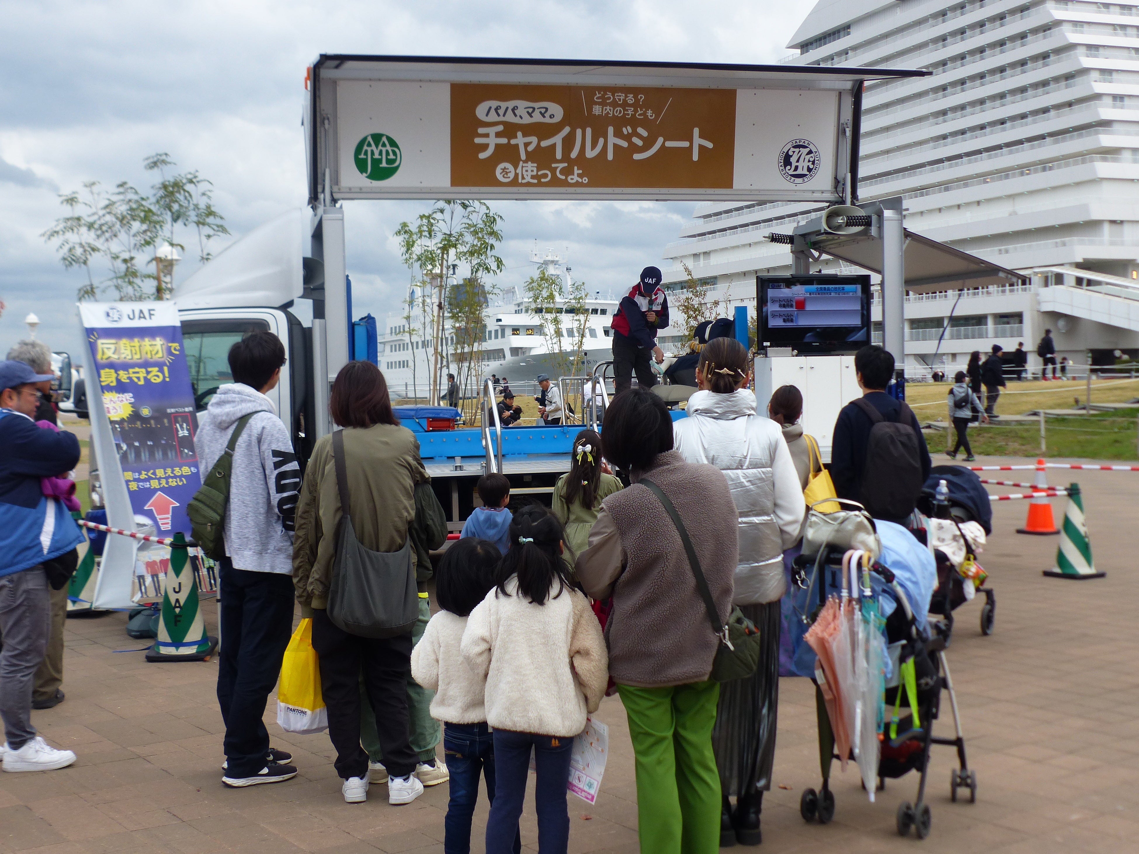 ほかにもチャイルドシート効果実演車を出展し、チャイルドシートの重要性を訴えます。