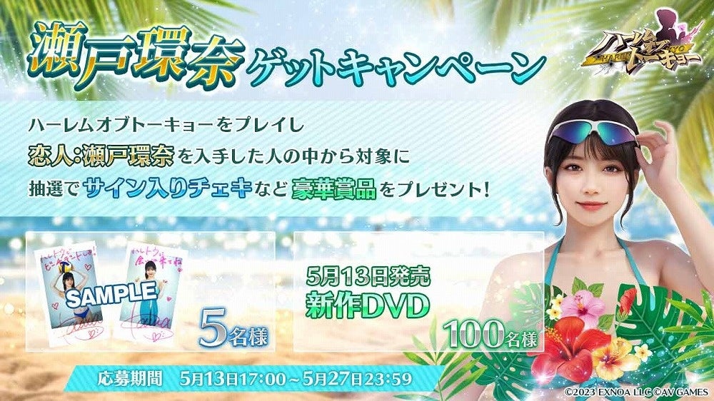 合同会社EXNOA(本社:東京都港区、CEO:村中 悠介、URL:https://games.dmm.com/)は、アウトローハーレム系経営RPG『ハーレムオブトーキョー』にて、2025年5月13日(火)より瀬戸環奈さんとのコラボイベントを開始している事をお知らせいたします。