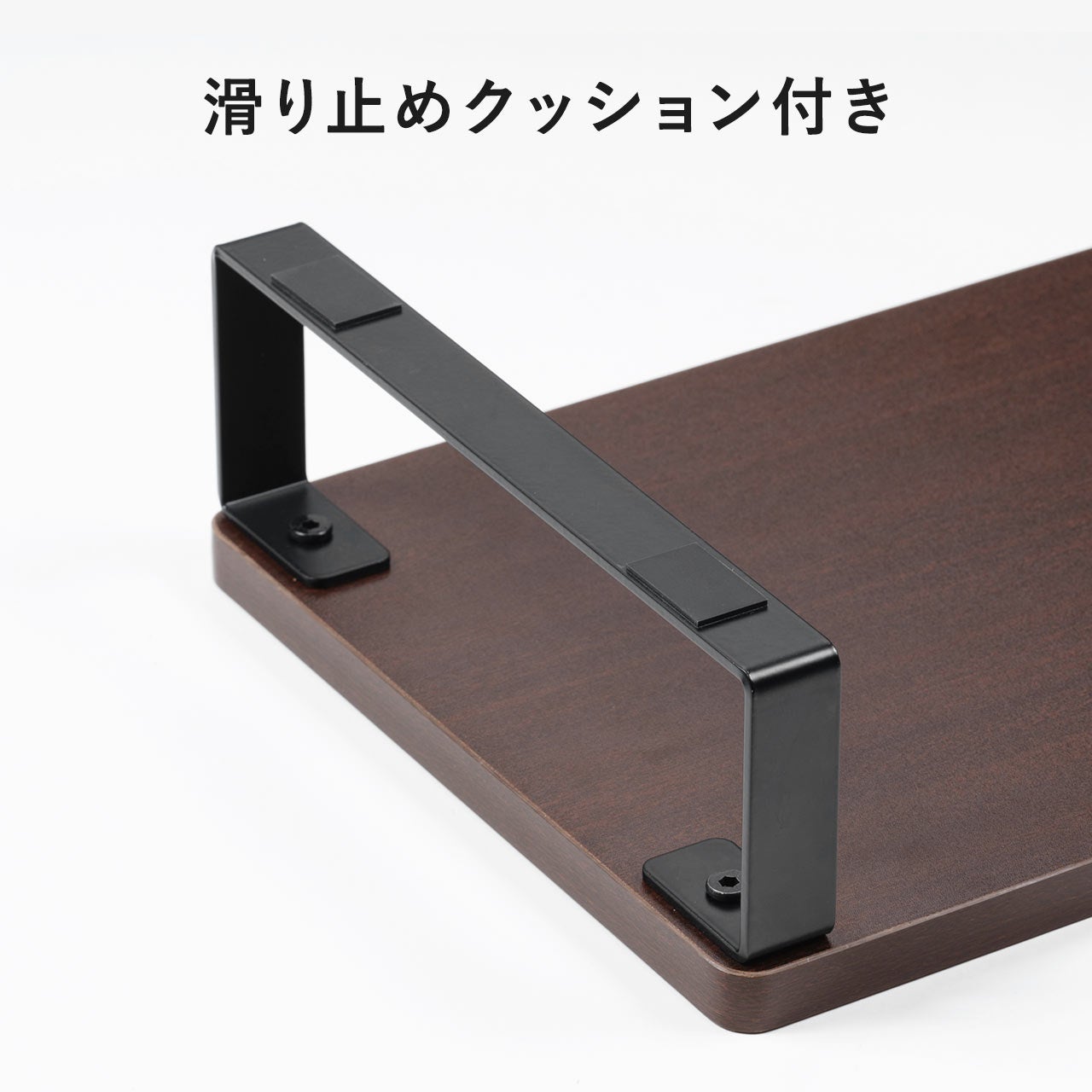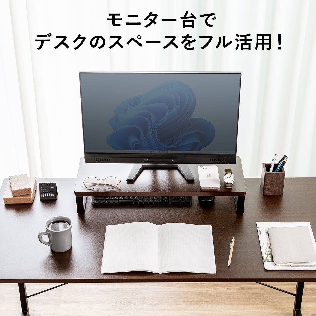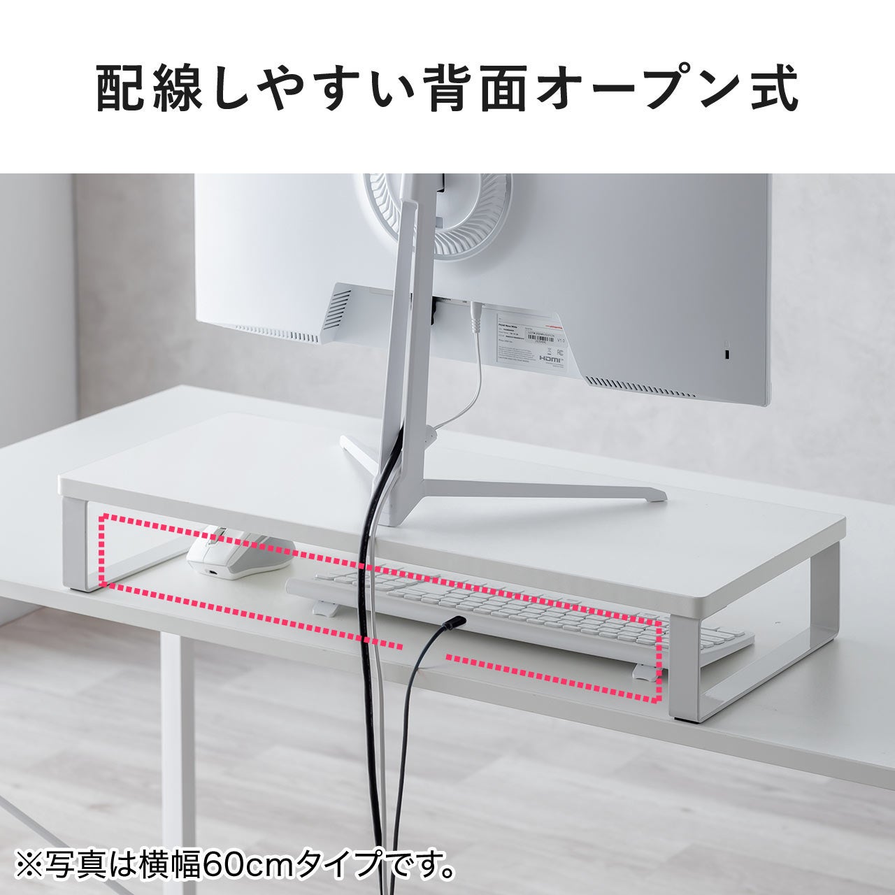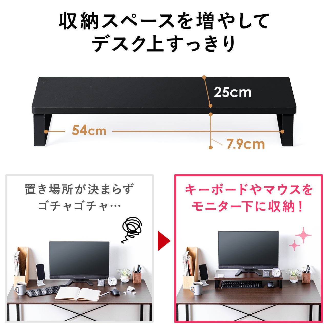 本製品は、キーボードやマウスを収納してデスク上を有効活用できるモニター台です。