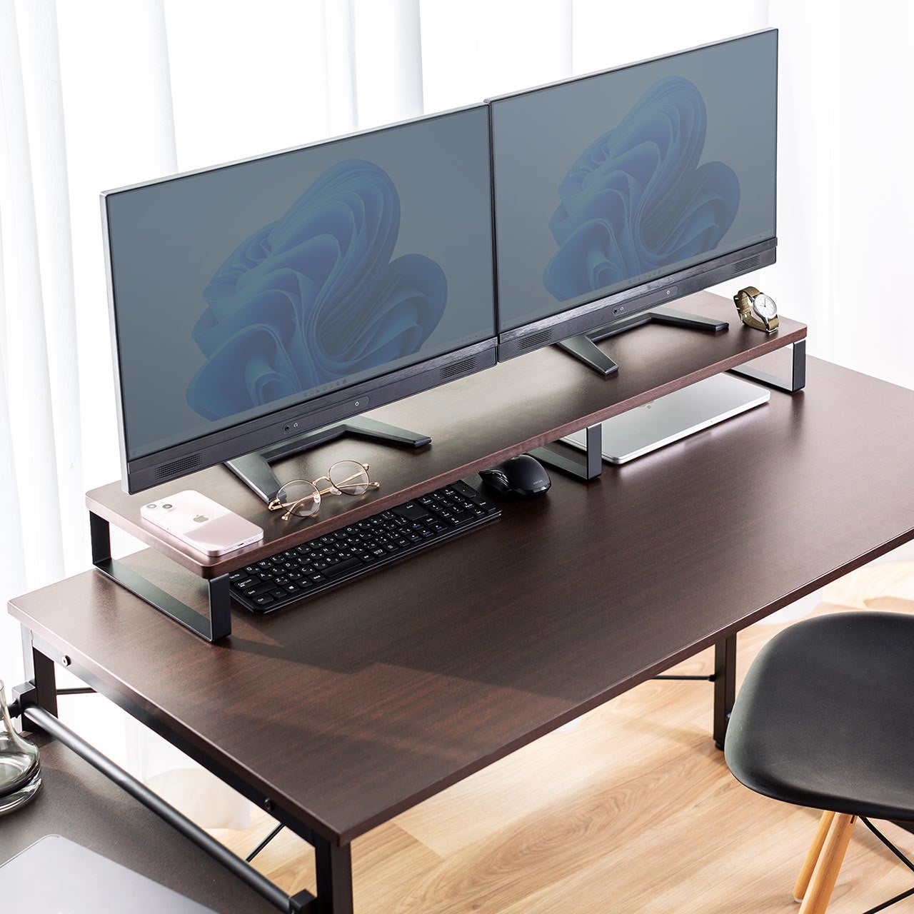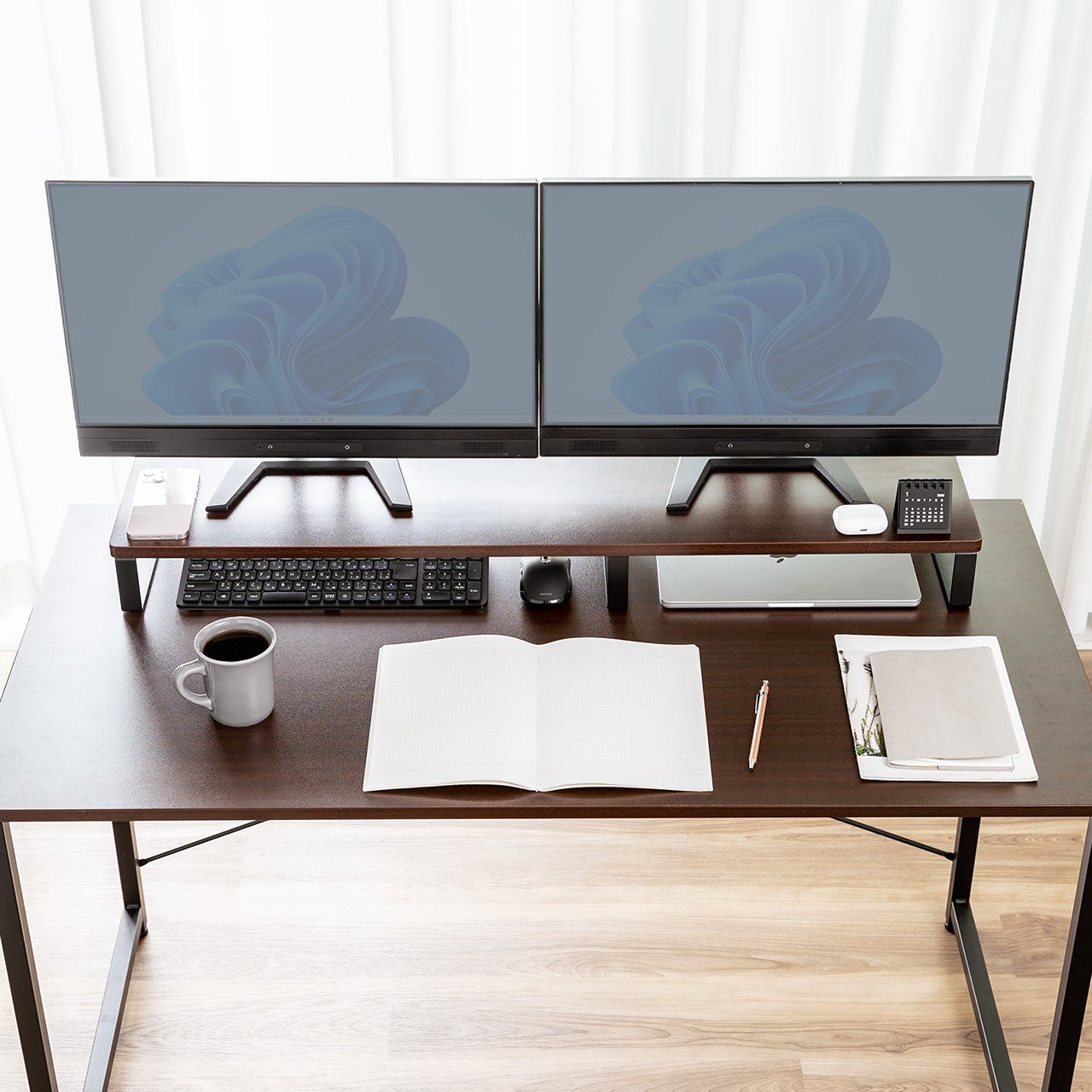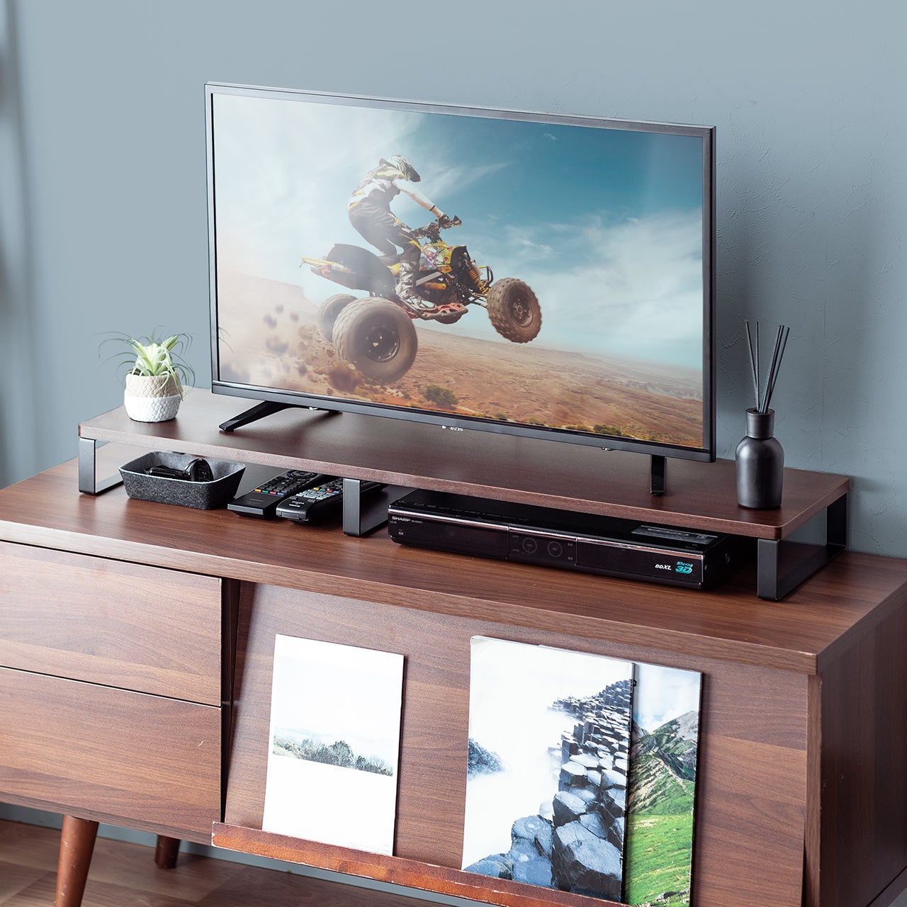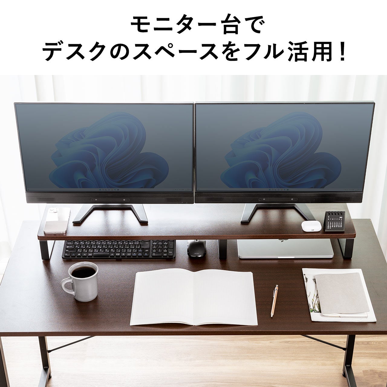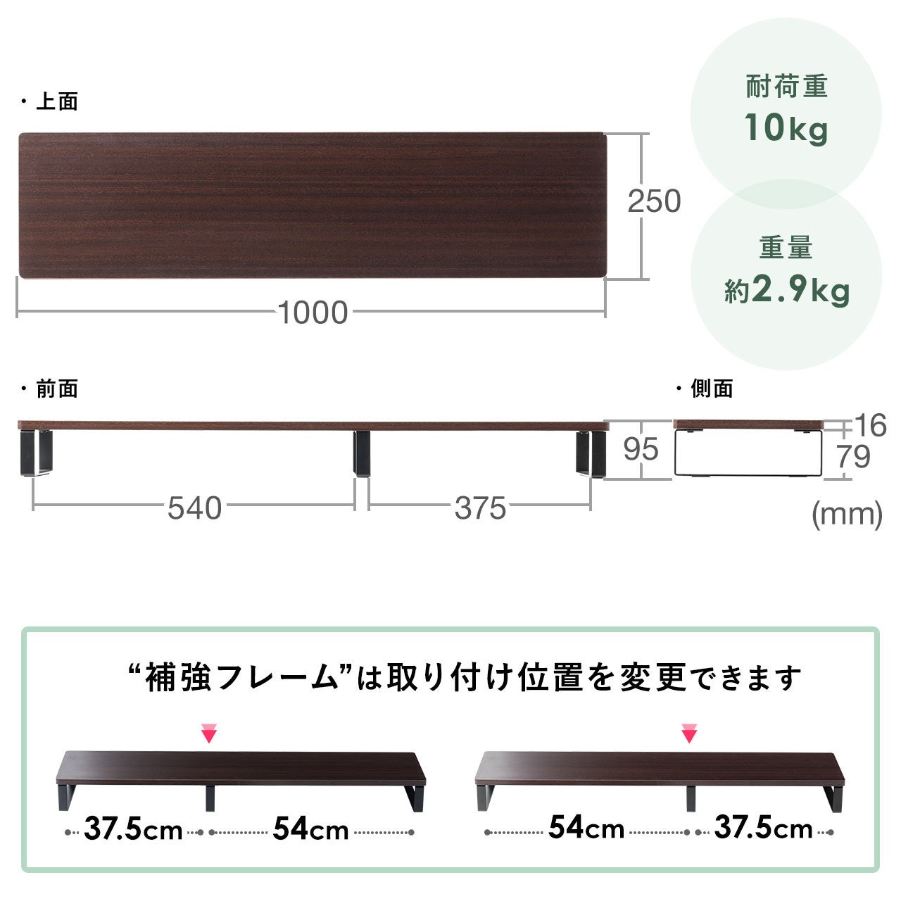 本製品は、キーボードやマウスを収納してデスク上を有効活用できるモニター台です。