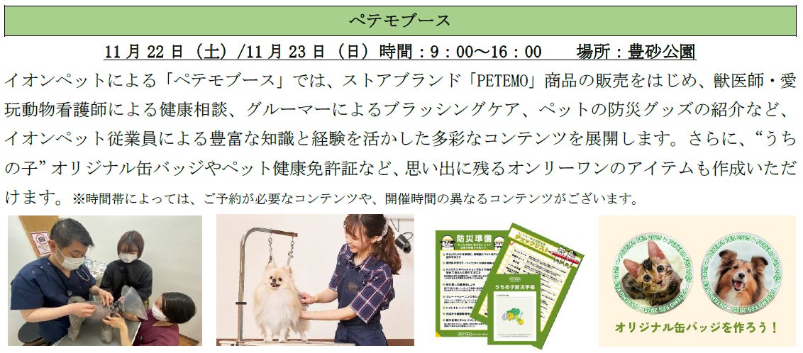 11月22日(土)~23日(日)、イオンモール幕張新都心・豊砂公園にて、ペットと楽しめる大型イベント「ペテモフェス2025」を開催