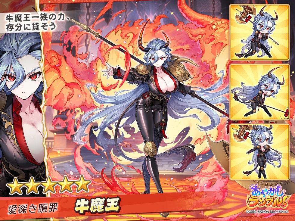 合同会社EXNOA(本社:東京都港区、CEO:村中 悠介、URL:https://games.dmm.com/)が運営するDMM GAMESにおいて、あやかし美少女たちと冒険する、迎撃型爽快スキルバトルRPG『あやかしランブル!』(https://ayarabu.jp/)は、5月16日に、新たに「★5 牛魔王」を追加したことを発表しました。