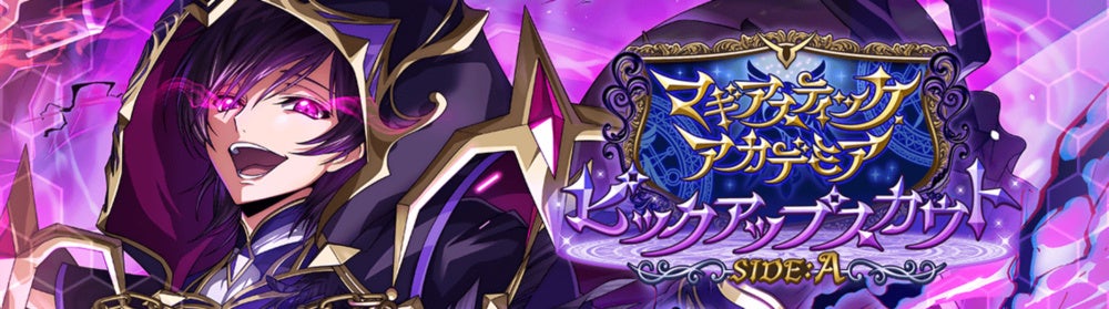 「マギアスティック・アカデミア ピックアップスカウト SIDE : A」では新パイロット、★4ルルーシュ[世界の理を変えし魔王]が、「マギアスティック・アカデミア ピックアップスカウト SIDE : B」では新パイロット、★4C.C.[解き放たれし失せ名の魔女]が、「マギアスティック・アカデミア ピックアップスカウト SIDE : C」では新パイロット、★4カレン[紅蓮 究極の極みへ!]が、「マギアスティック・アカデミア ピックアップスカウト SIDE : D」では新パイロット、★4スザク[ランスロット 究極の極みへ!]が登場!