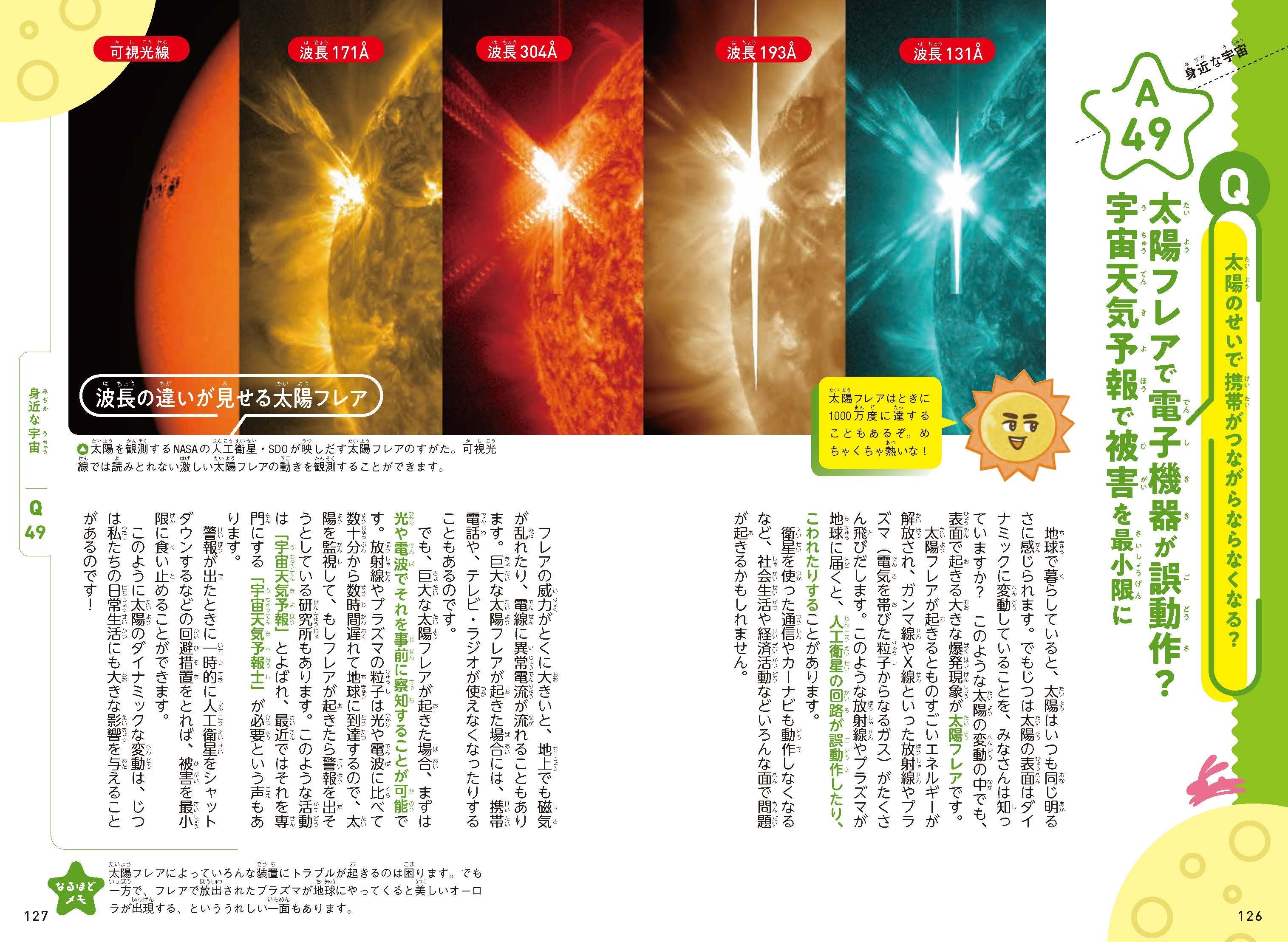 大ヒットしている『天気の図鑑』と同じ四六判で持ち歩きやすく、読みやすい見開き構成に61のQ&Aが納められ、読み進めているうちに、宇宙のふしぎにワクワクすること間違いなしです。