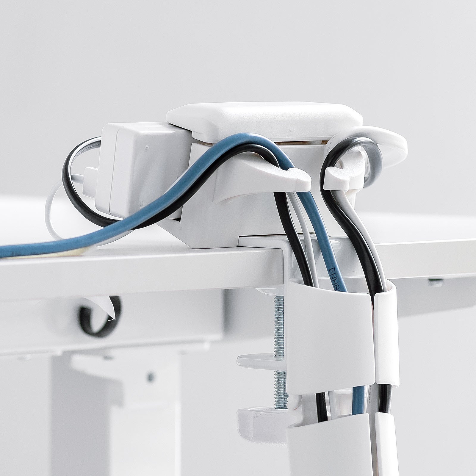 クランプ式だから簡単でしっかり天板に固定することができるため、昇降デスクにも最適です。昇降によるケーブルの引っ張りにも対応し、上下動作による配線の煩わしさを軽減できます。