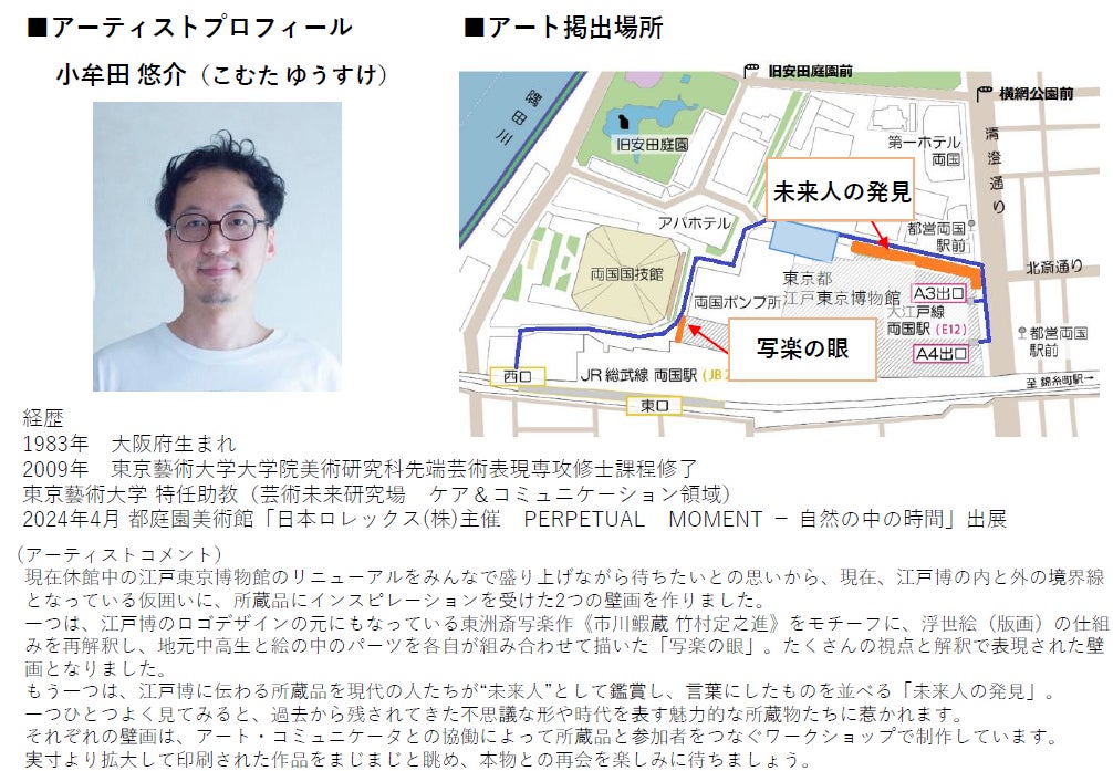 「TOKYO CITY CANVAS」では、この度、長期休館中の東京都江戸東京博物館(江戸博)の仮囲いを舞台に、所蔵品を元にデザインした2つのアート作品を公開します。